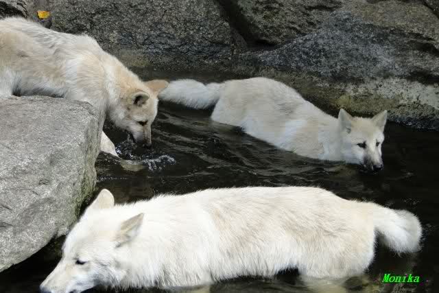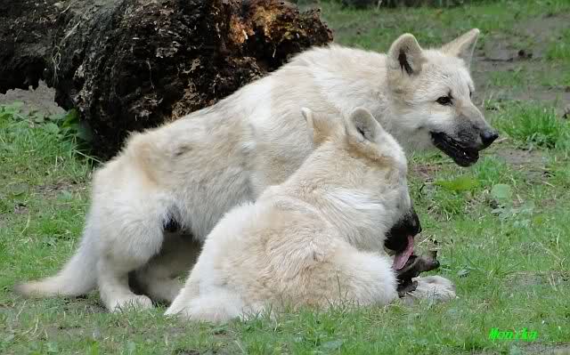 Bei den Wölfen war heute Action angesagt. Sie hatten zwei große Knochen und jagten sie sich gegenseitig ab.Ich habe noch ein Video davon, werde es morgen oder übermorgen einstellen.