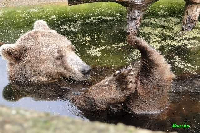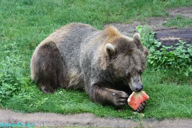 Die Braunbären bekamen Melonen. Siddy freute so sehr darüber, daß sie sich auf der Melone rollte