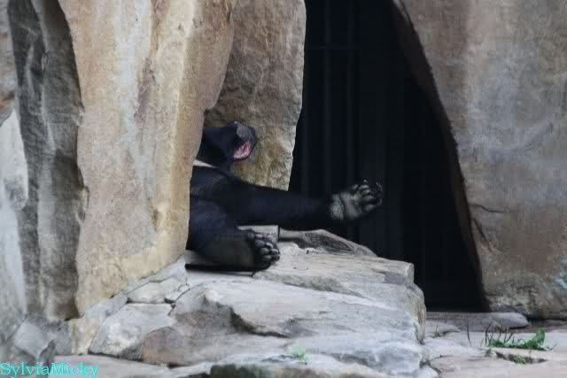 Das Affenhaus war gestern auch lange auf und die meisten Affen schliefen schon oder machten gerade ihre "Betten" aus Stroh oder einem Jutesack. Die Mandrills schliefen alle im sitzen.
