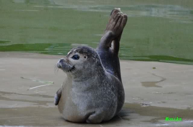 Die Kleine (Mandy oder Hilde)war die einzigste die noch munter war, und unterhielt uns mit etwas "Seehund-Yoga" .