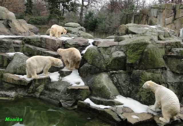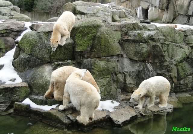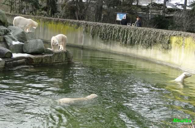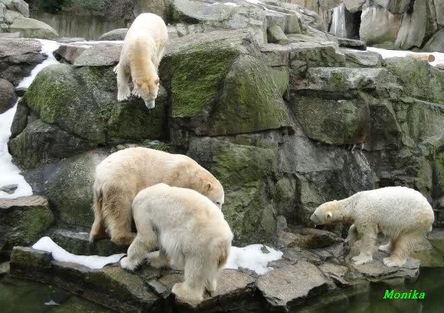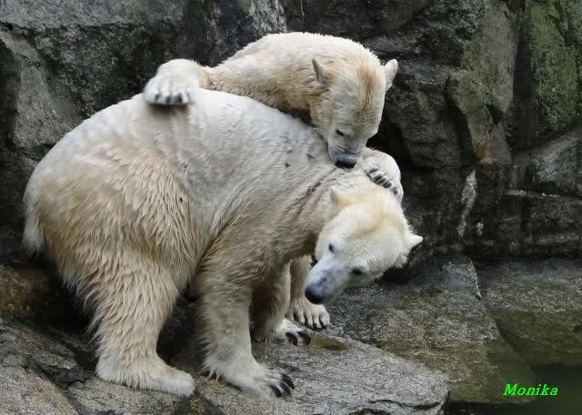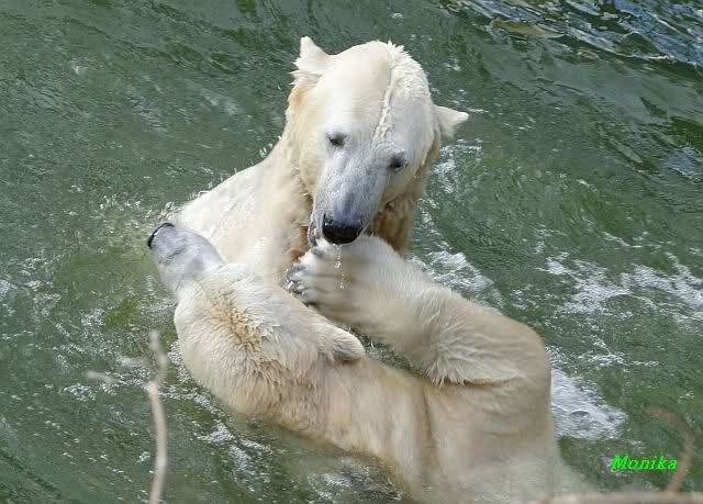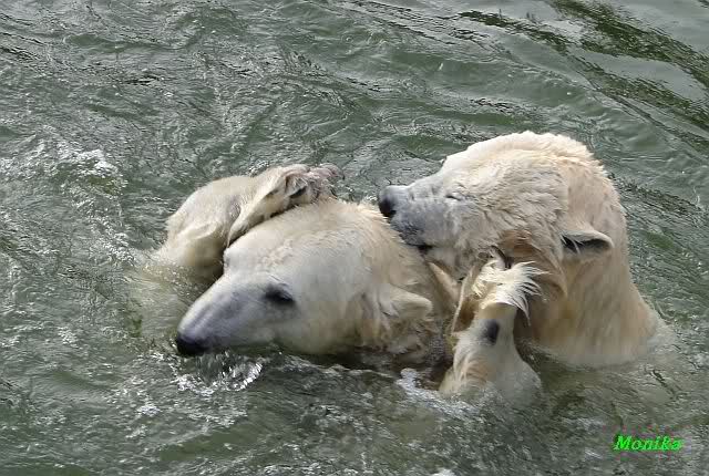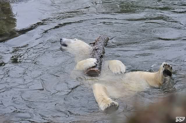 schöne Motive, Tosca mit Baumstamm und Knut versenkt die Mama ... Ok, Knut geht's gut und den Mädels auch
