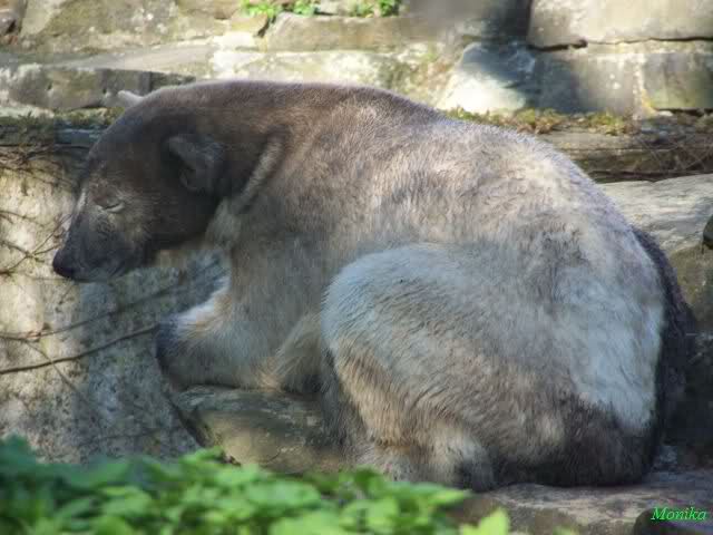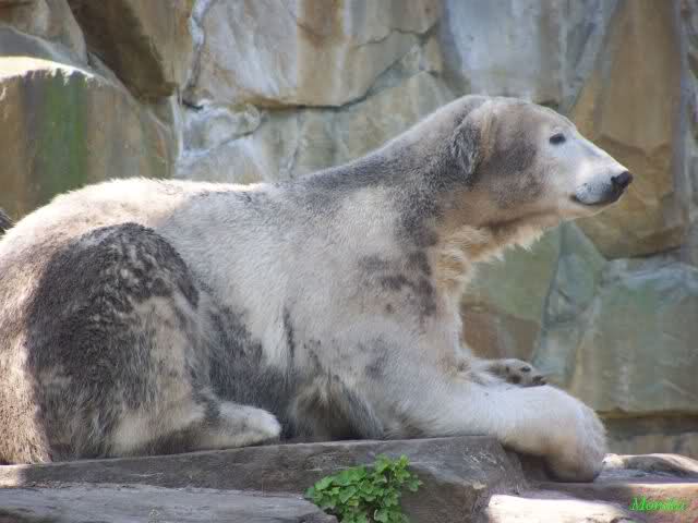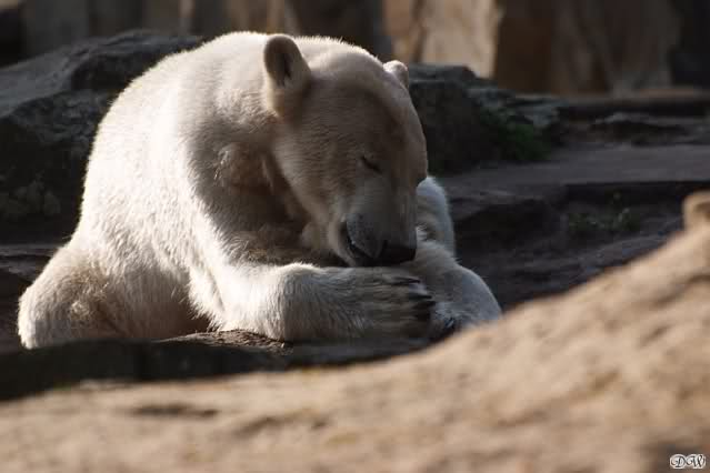 Ich wollte gern noch die großen Eisbären sehen, die sollen zur Zeit ein interessantes Leben führen. Aber als ich kam, lagen sie auf ihrer Anlage verteilt und schliefen.