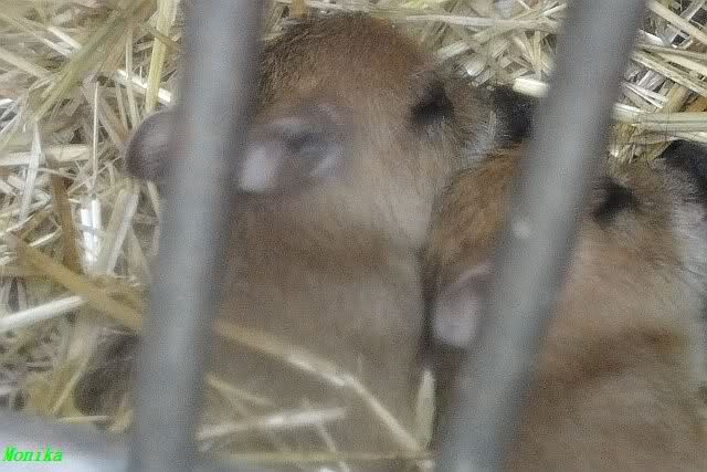 Die beiden kleinen Pekaris sind 6 Tage alt und lagen zitternd im Stroh.