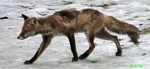 Der Fuchs sah ziemlich mager aus. Hat er noch Winterfell, oder ist die Fellmusterung normal? Habe bisher immer nur Füchse mit hellbraunem Fell gesehen.