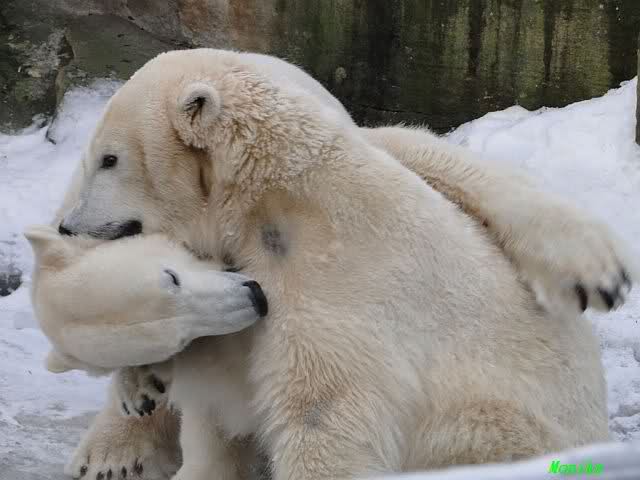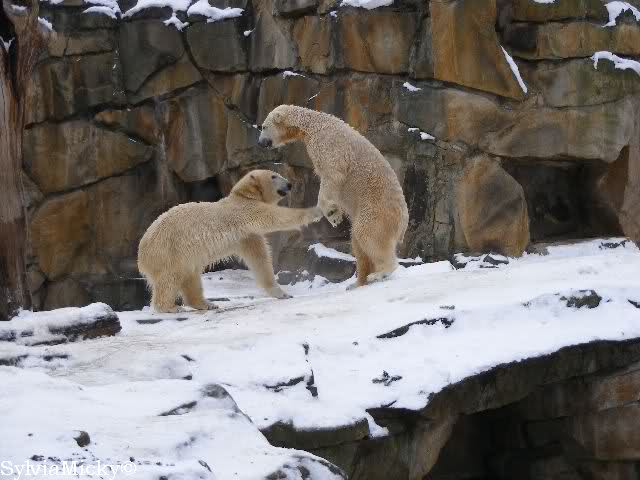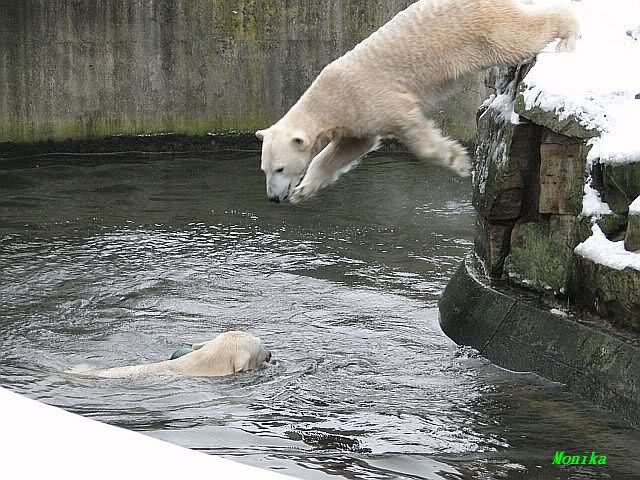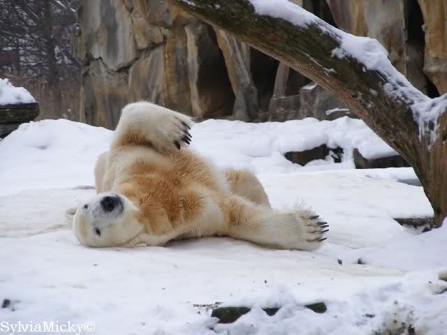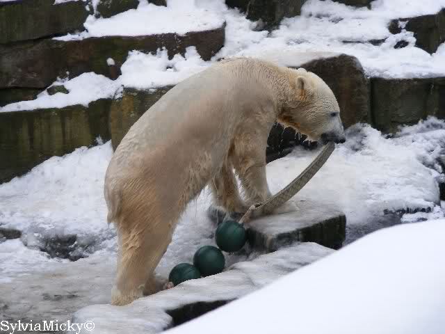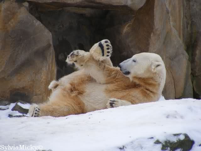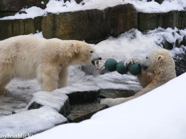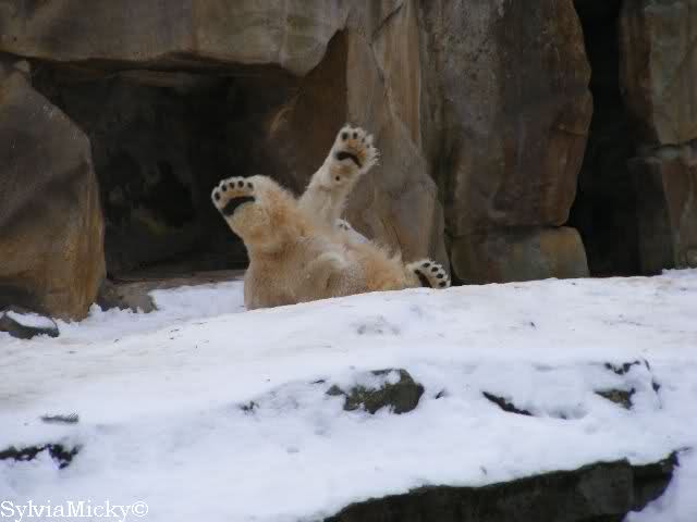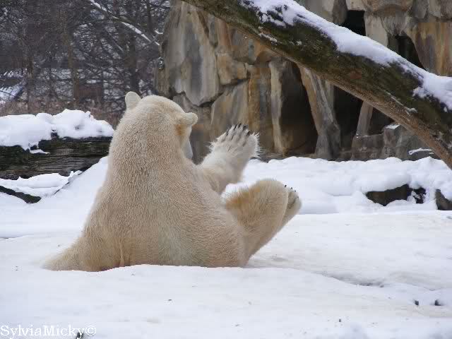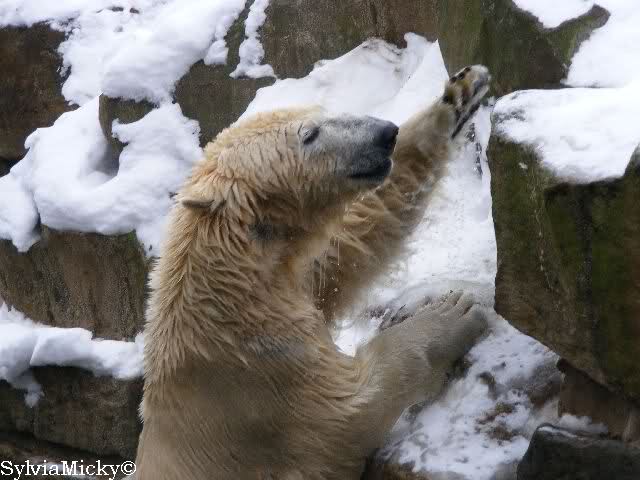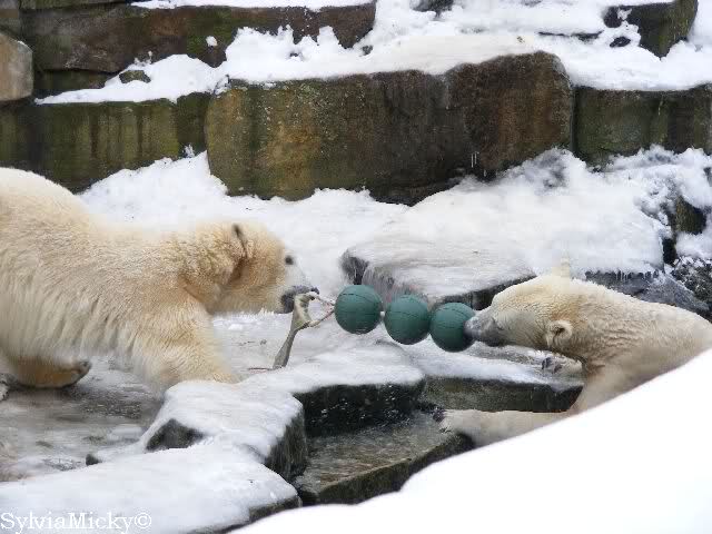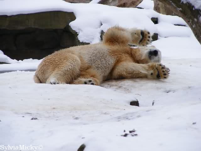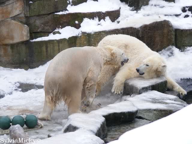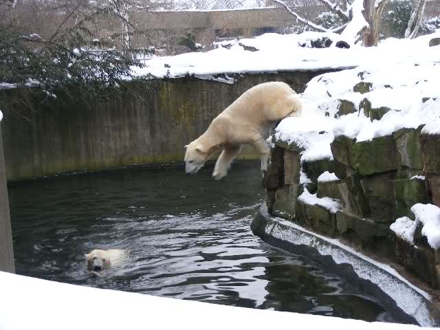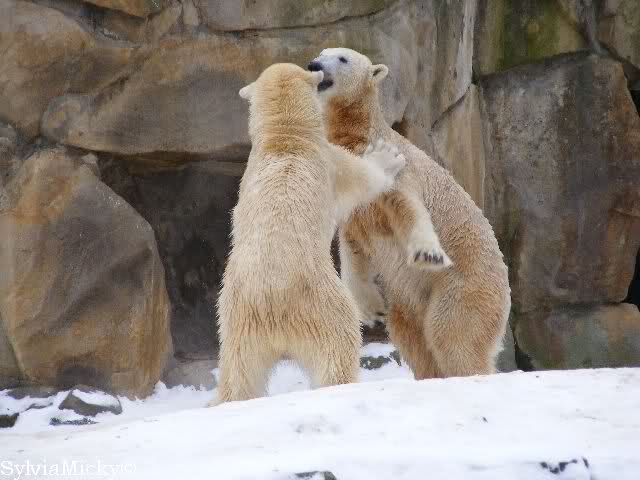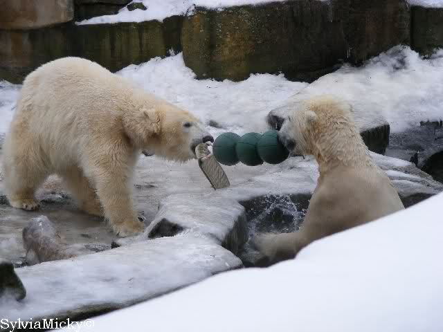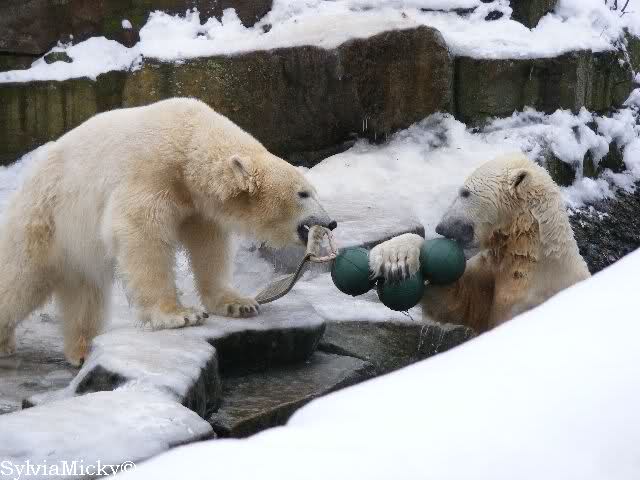 steht in jedem Artikel. Ganz so ist es ja nicht, aber der Eisbär ist natürlich ganz klar im Vorteil. Es sieht wunderschön aus, wenn sie durch den Schnee kullern und über die Anlage rennen.