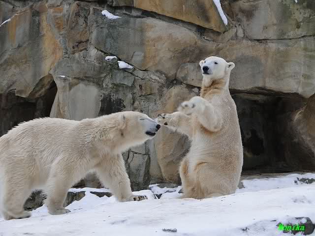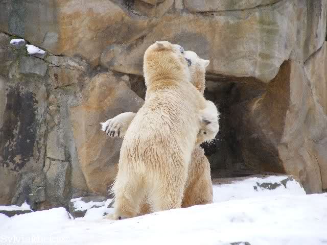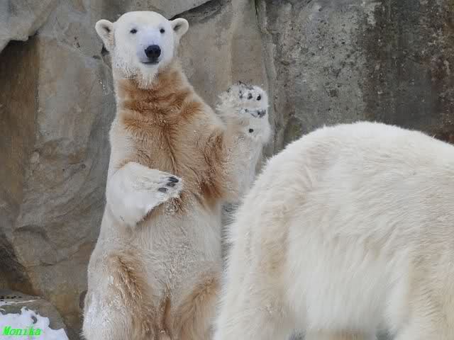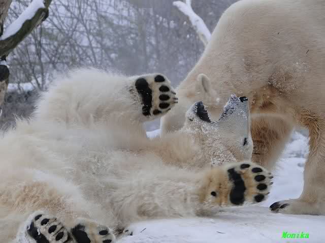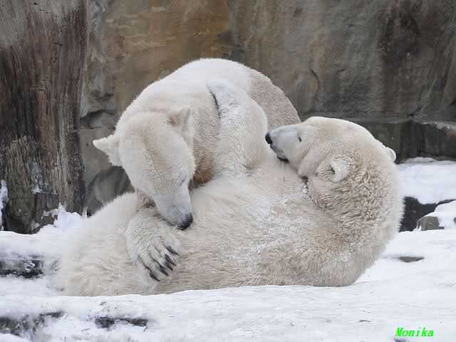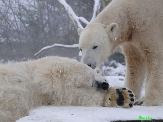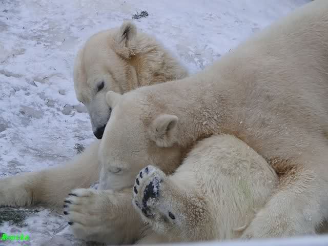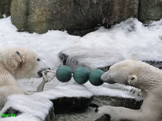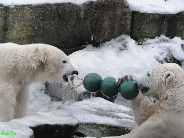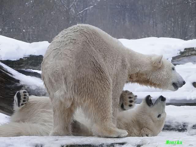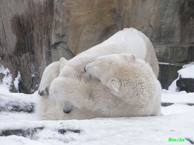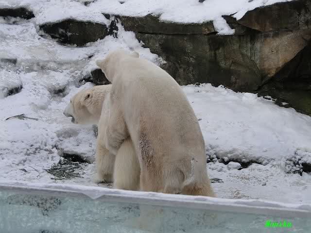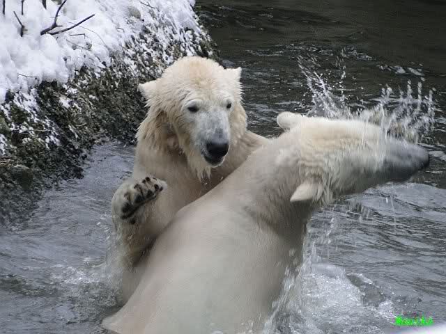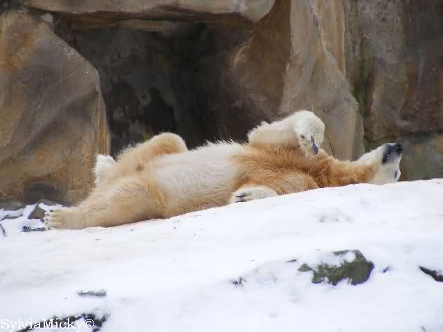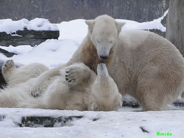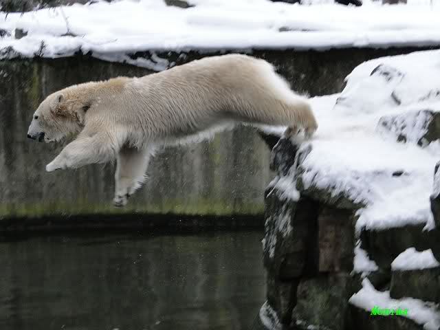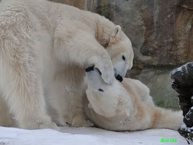 steht in jedem Artikel. Ganz so ist es ja nicht, aber der Eisbär ist natürlich ganz klar im Vorteil. Es sieht wunderschön aus, wenn sie durch den Schnee kullern und über die Anlage rennen.