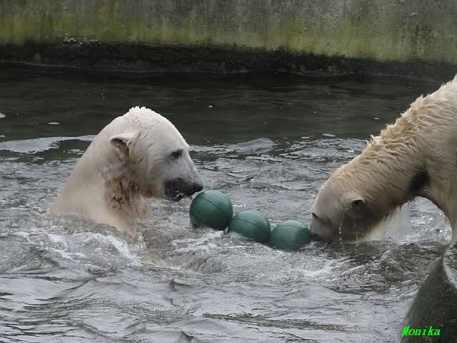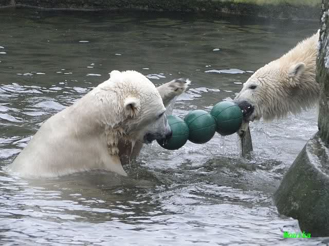 Good evening to you all Knut & Giovanna friends around the world at the end of Friday. Wish you all a good end of the day and a good night later. And ... take a look to the brand new polar bear pictures from today. It´s great to watch Knut & Giovanna playing.