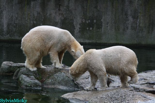 Dann wieder auf die Insel zu Knut, der brummte wieder. Es sah so aus, als wenn sie Knut zum spielen animieren wollte.