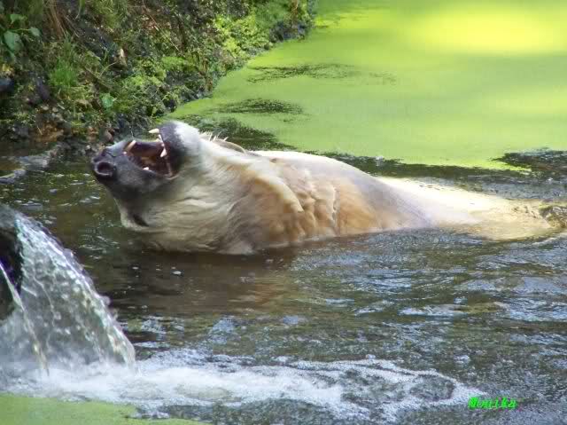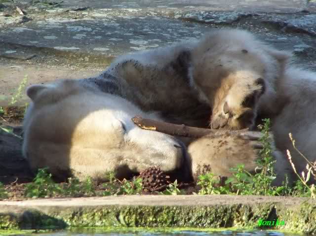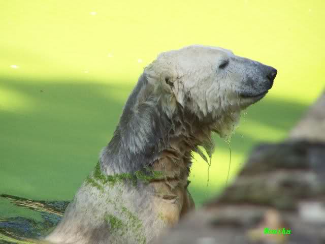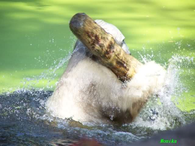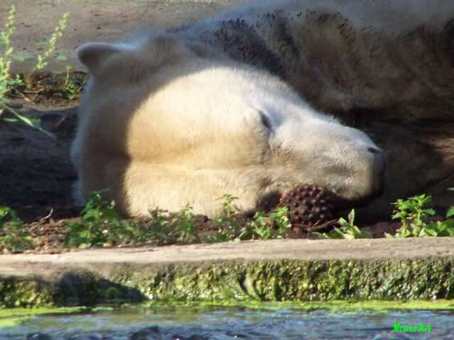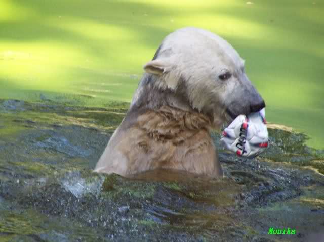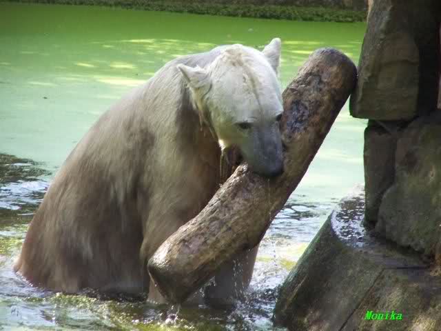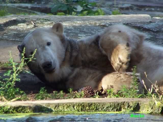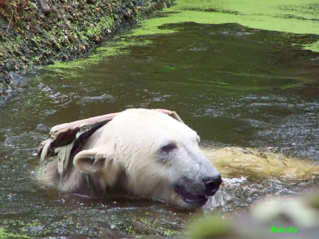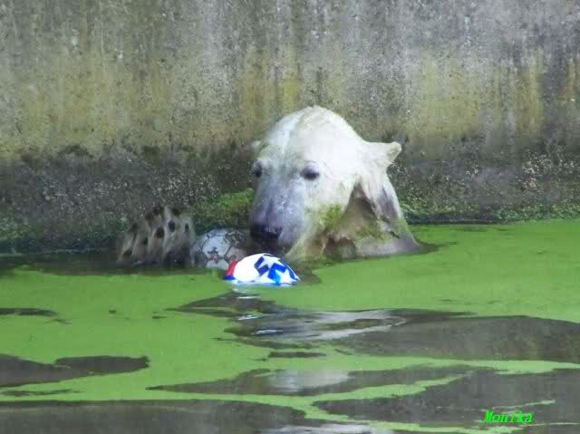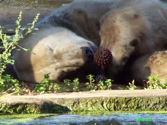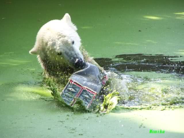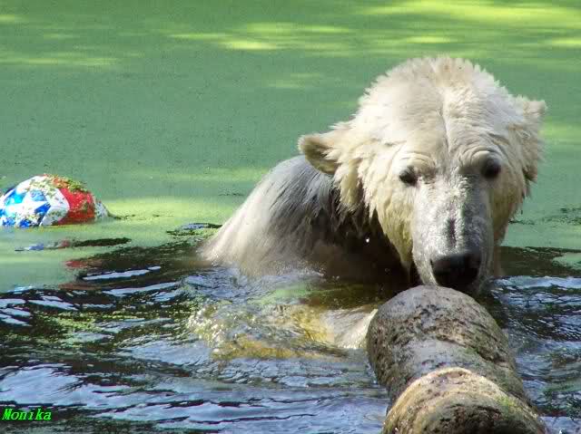 Erst heute habe ich hier im Forum geblättert, aber mein Partner hat mich stets mündlich auf dem Laufenden gehalten und hierbei vernommen, dass Gianna immer noch nicht mit Knut zusammengebracht wurde. Gianna ist doch so eine quicklebendige Wasserratte und sie spielt soooo gerne mit ihrem Eimer! Wahrscheinlich wird sie im hinteren Bereich nichts zu spielen bekommen, oder doch? Vielleicht kann mal jemand nachfragen? Nicht verwunderlich, dass die *kleine Maus* sich an die ganzen Umstände erst gewöhnen muss. Ich bin schon sehr gespannt, wie es sein wird, ob sie auch in die *Schminkecke* geht, wenn es denn so weit ist, dass sie ins Gehege kann.
