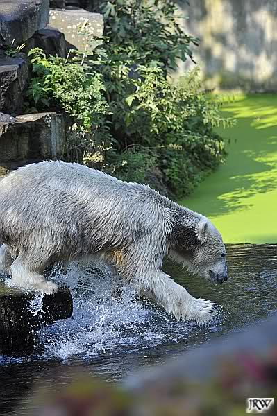 allem Knuographen vielen Dank! Ich habe mich die ganze Woche an euren herrlichen Knutbildern gefreut! Wenn Knut sich so einfärbt, ist er wirklich optimal getarnt. So gesehen ist sein weißer Pelz sehr vielseitig!! Vielleicht fliegt ihm - so getarnt lauernd - mal buchstäblich ein Täubchen ins Mäulchen!!!!