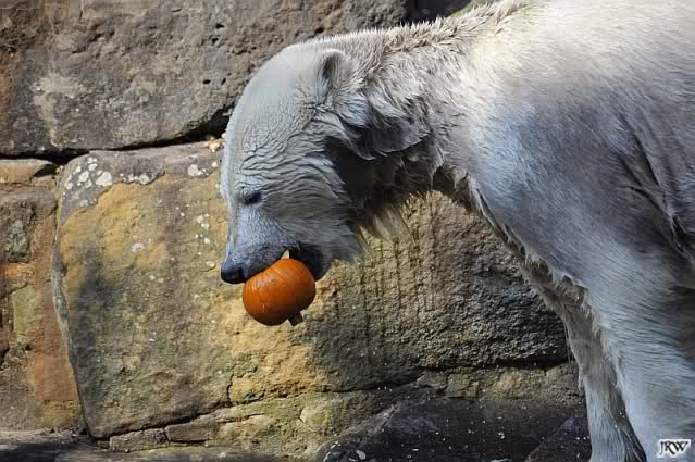 Herr Röbke hatte mir versprochen, dass er Knut am nächsten Tag meinen Kürbis gibt. Das hat er getan, man sieht es auf Sylvias letztem Bild.