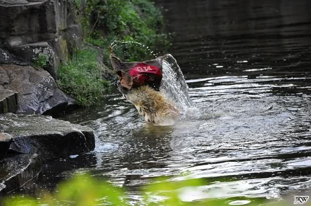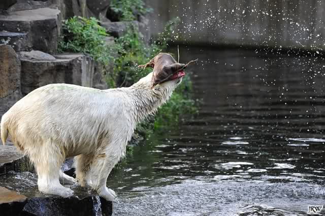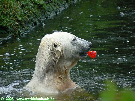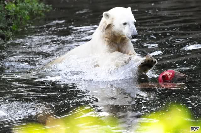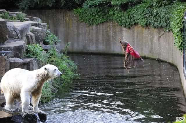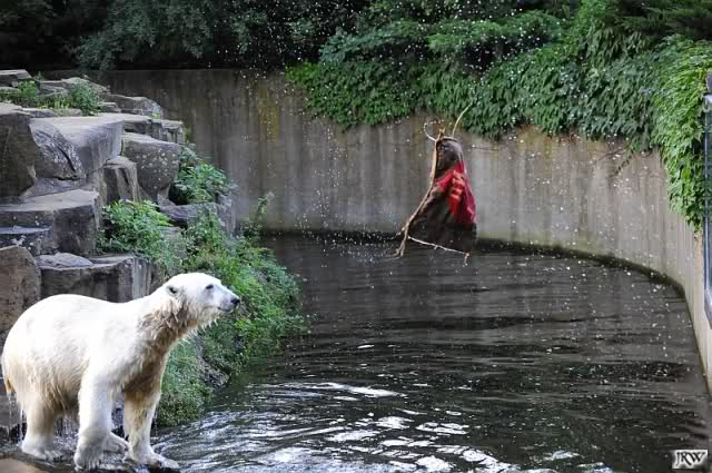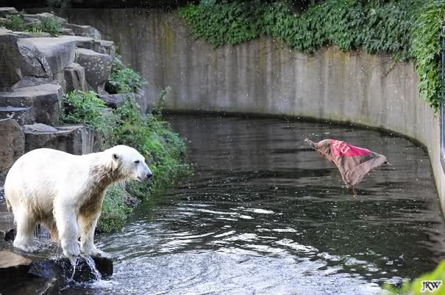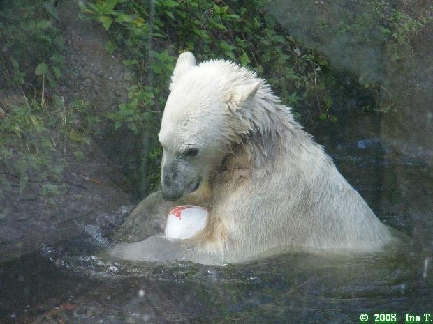 Good evening, late back from a birthday party and online now. Want to post some Knut pictures by Ina. Pictures from today, Knuts first day without Thomas Doerflein. But Knut was in a good mood. Enjoy our polar bear youngster.