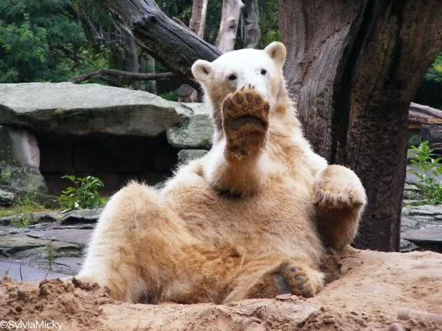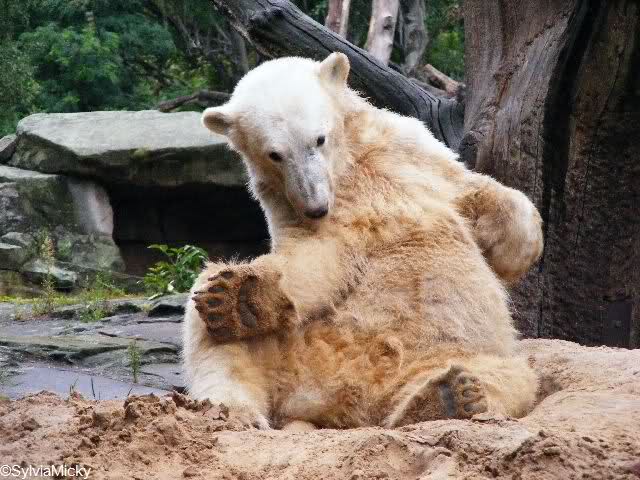 Vielen Dank für die wie immer toll untertitelten Fotos von unserem Lieblingsbären und die Zooberichte! Gut zu wissen, dass es Knut trotz Abwesenheit seines Ziehpapas gut geht.