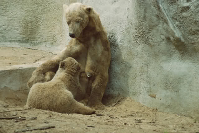 Wenn man bedenkt, dass die Eisbärin in der Natur mehrere Monate mit ihren Kindern in der Höhle lebt und kaum Nahrung zu sich nimmt, dann müssen diese Bilder doch nachdenklich stimmen.