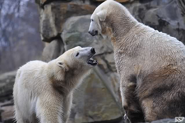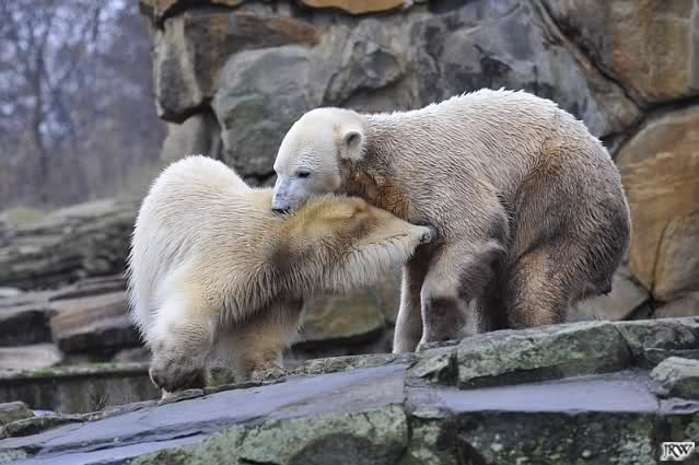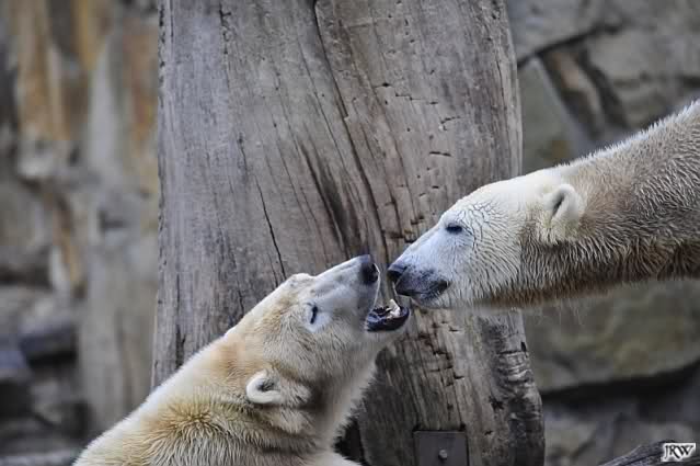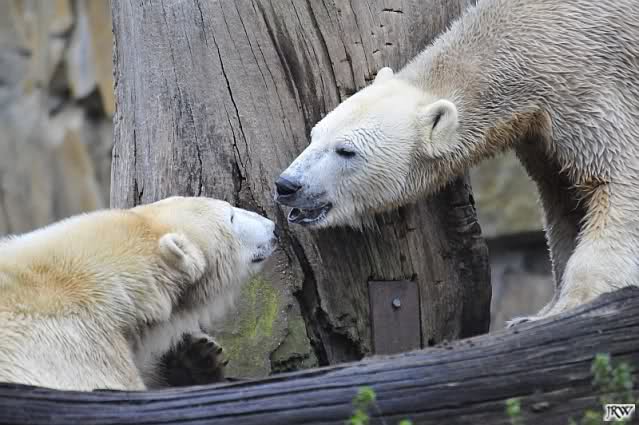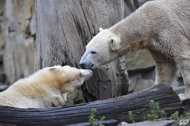 Danke für die Fotos der Eisbärenkiddies. Ihr habt da wieder richtige Schnappschüsse mitgebracht. Sind die zwei schön anzusehen. Scheinbar haben sie jetzt einen guten Draht zueinander gefunden. Hat Knuti nun die Scheu ganz verloren, oder geht er noch manchesmal zurück? Sieht jedenfalls so aus, als hätte er manchesmal noch Respekt vor ihr, aber nicht so in dem Ausmass, wie ich es noch kennengelernt hat.