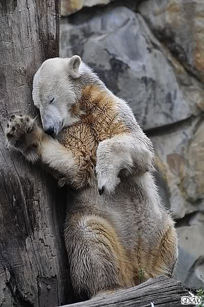 Nun habe ich Knut und Gianna einige Male in letzter Zeit gesehen, doch nicht täglich, wie viele hier. Aber Knuts Lippe sah ich sehr häufig. Ich schließe daraus, daß es ihm keineswegs leichtfällt, die Nähe Giannas auszuhalten, zumal ja auch das Gehege aufgrund seiner Größe wenig Rückzugsmöglichkeiten bietet.
