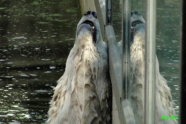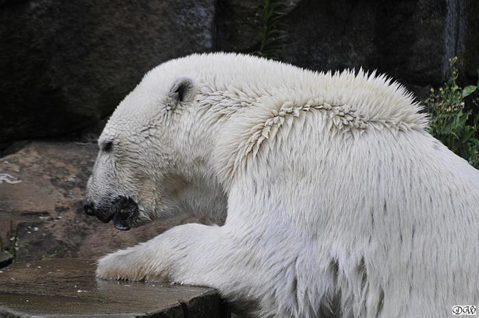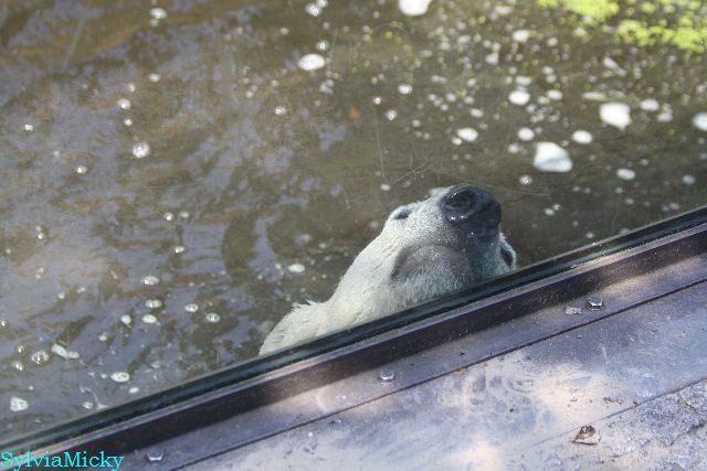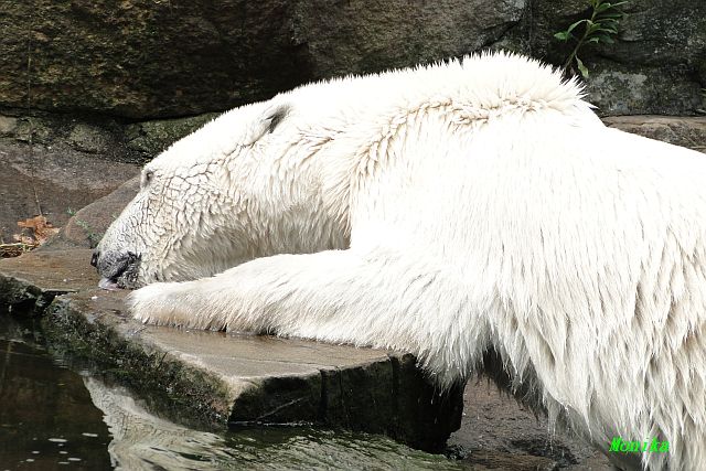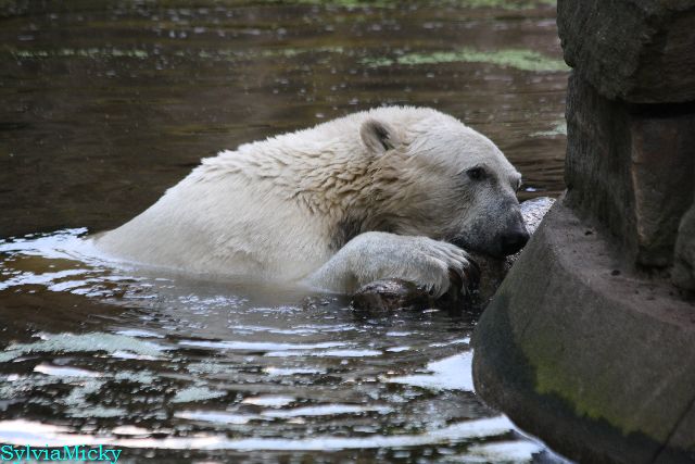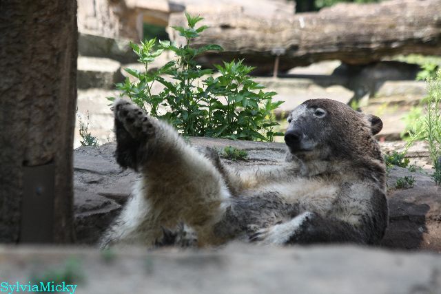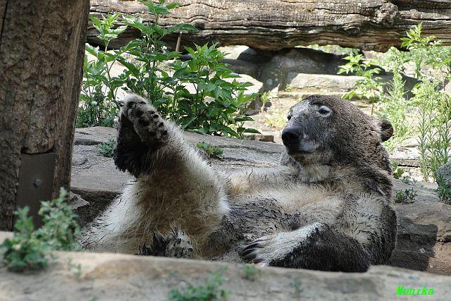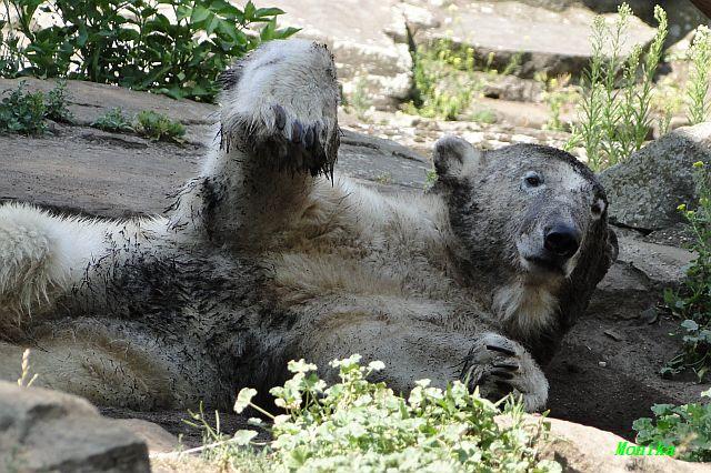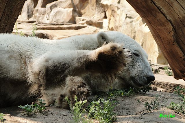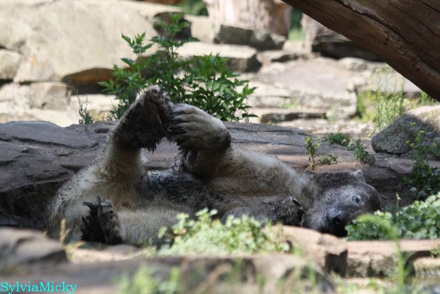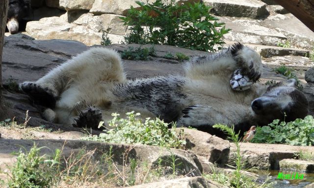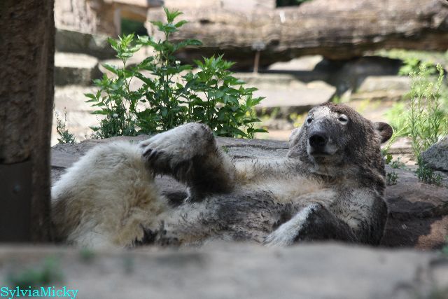 Hallo Doris, weißt Du ob die großen Eisbären gestern auch eine Dusche bekommen haben? Nancy und Tosca lagen heute Mittag bei der Hitze ganz an der Mauer, weil da noch ein bißchen Schatten ist.