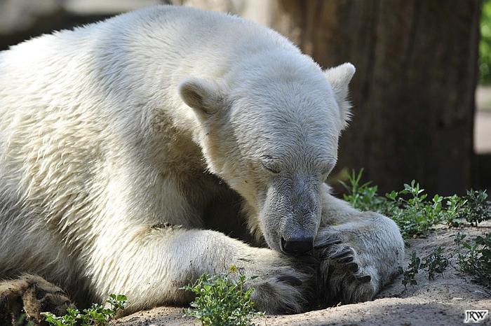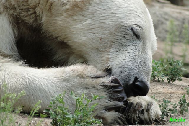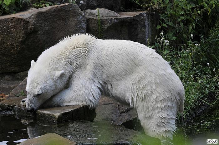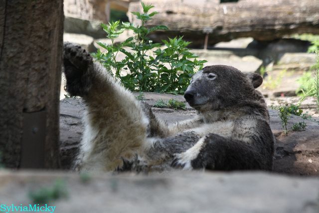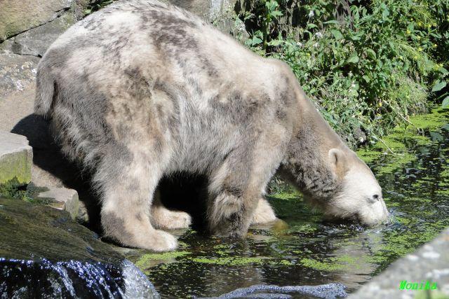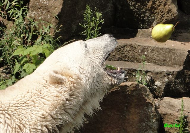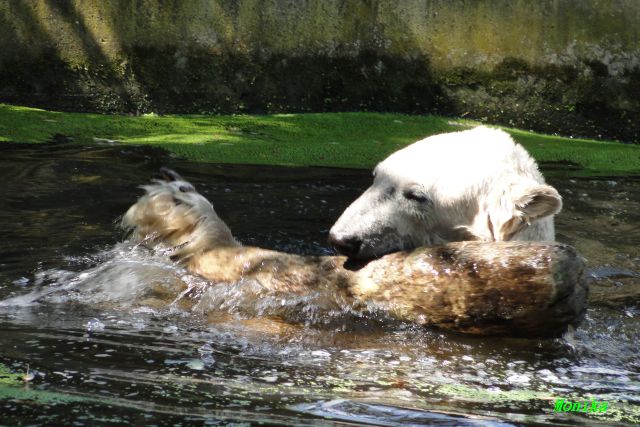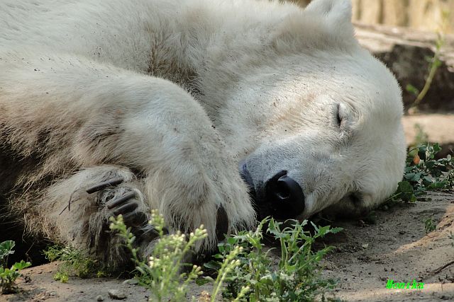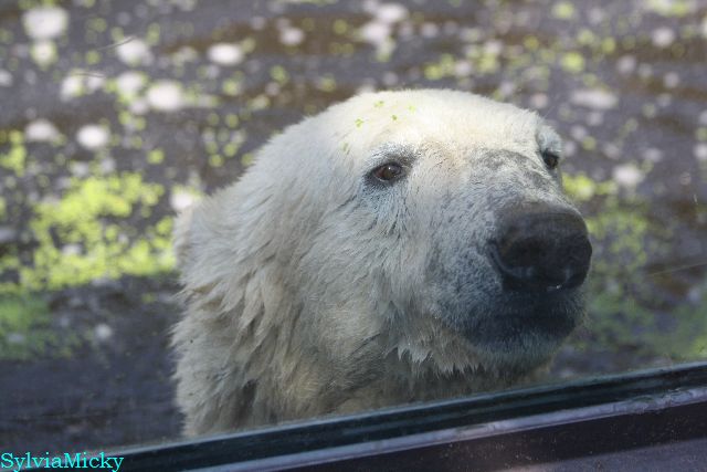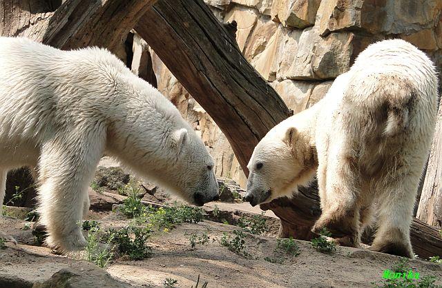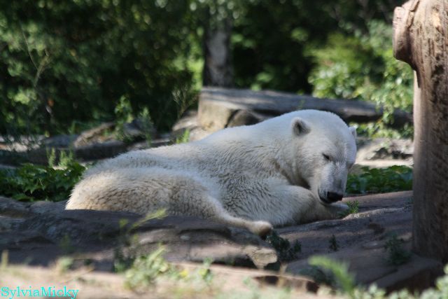 Hallo Doris, weißt Du ob die großen Eisbären gestern auch eine Dusche bekommen haben? Nancy und Tosca lagen heute Mittag bei der Hitze ganz an der Mauer, weil da noch ein bißchen Schatten ist.