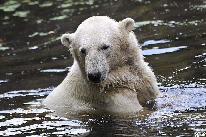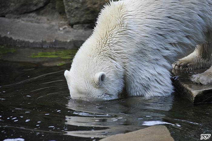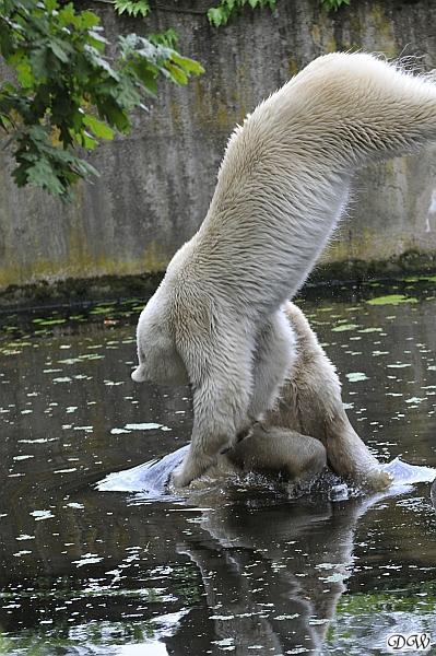 Good evening, good night to you all polar bear friends. It was another hot day in Knut City and the two polar bear kids got some good showers.