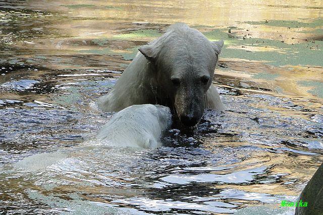 Thank you very, very much to all Photographers for the beautiful new pictures of Knut and Giovanna: I am happy to see that they had some fresh moments in the water... and under the shower...
