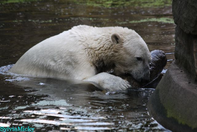 Ich habe hier noch ein kleines Video von gestern, als Knut mit dem großen Baumstamm im Wasser spielte.
