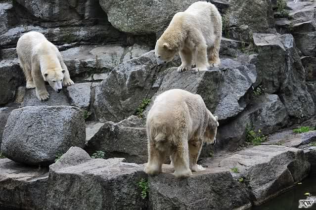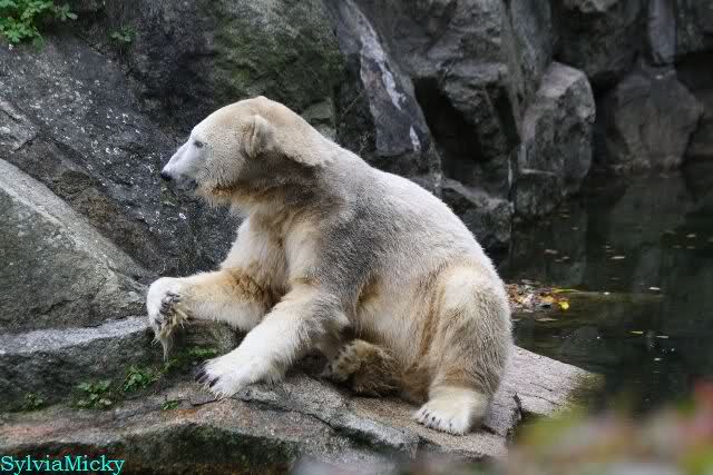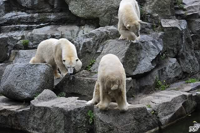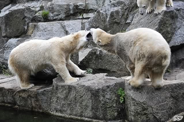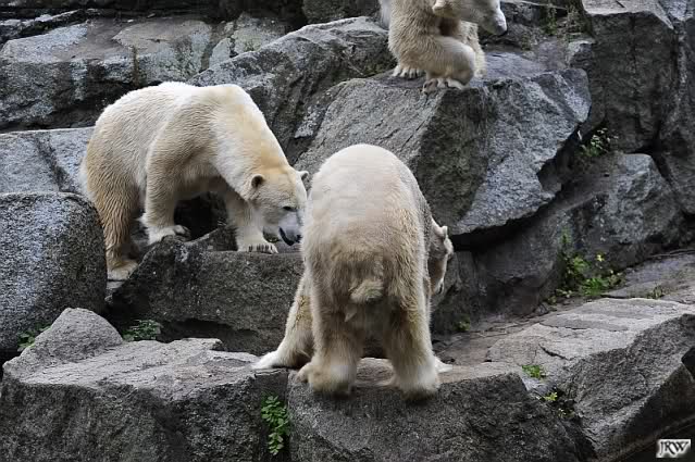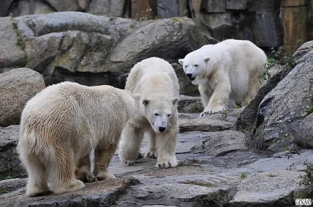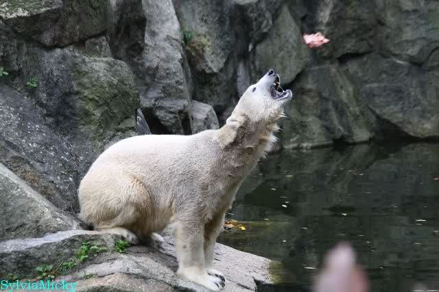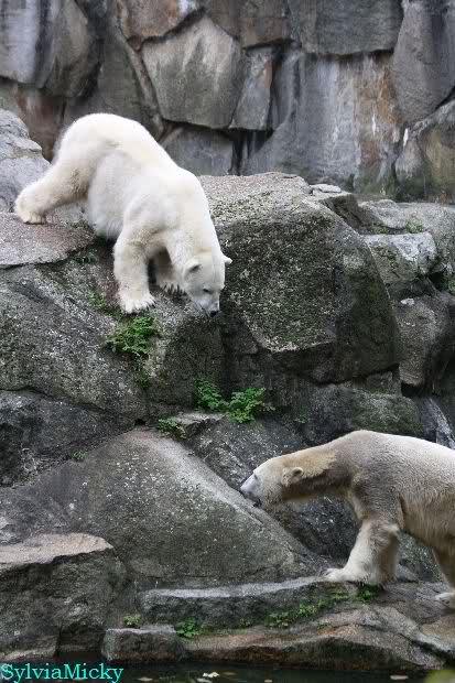 Good evening to you all Knut & Co friends around the world. It seems the polar bears were in a good mood today. Knut had not so much stress today. Enjoy the pictures.
