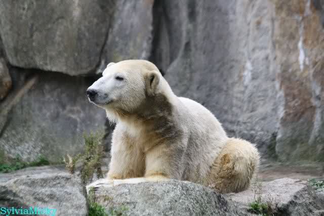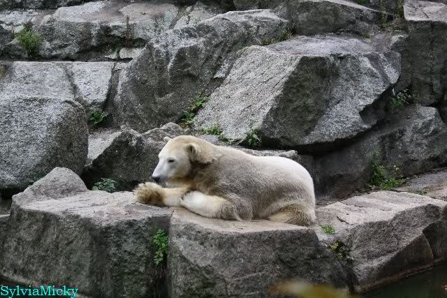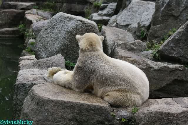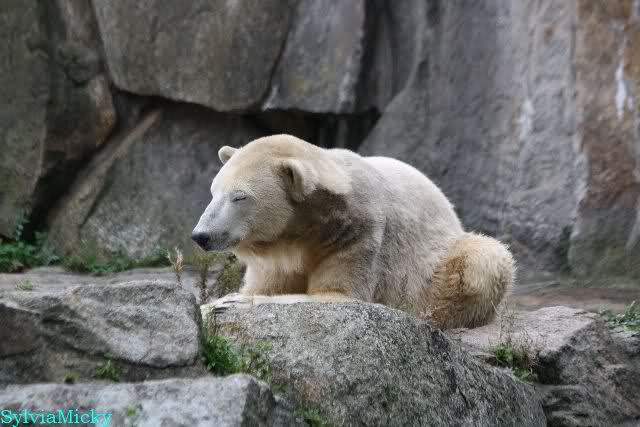 Ich war von 9.00 bis kurz vor 10.00 alleine an der Anlage von Knut. Es war sehr schön. Knut schlief und die Großen auch. Eine japanische Knutfreundin aus Tokio kam kurz in der Pause eines Seminars vorbei um Knut zu sehen. Sie fliegt morgen wieder nach Hause. Sie nannte Knut Knuto. Ich habe dies schon öfters von Japanern gehört. An der Anlage trifft sich wirklich die Welt.