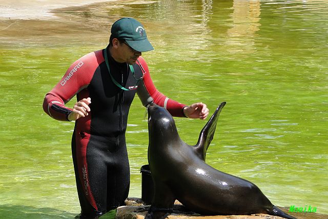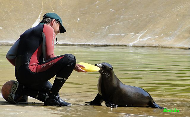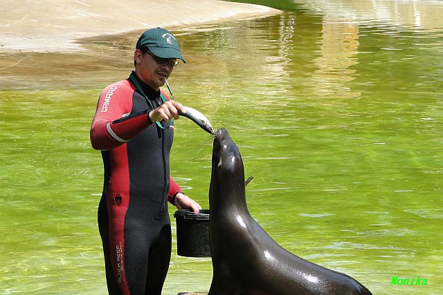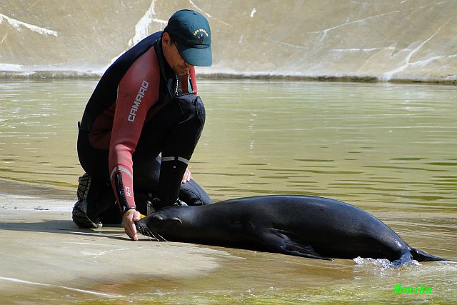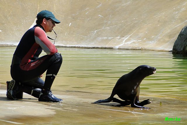 Herr Zahmel bei den ersten Trainingsversuchen mit dem kleinen Diego, der seine Sache schon sehr gut machte.