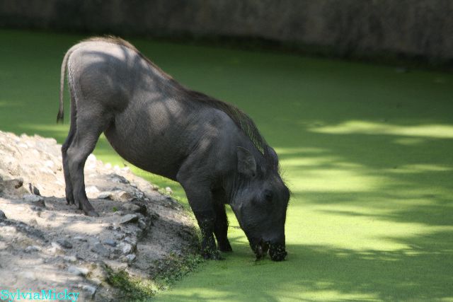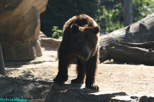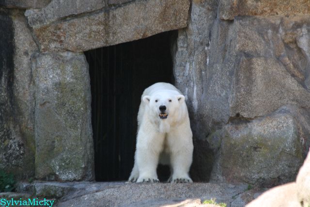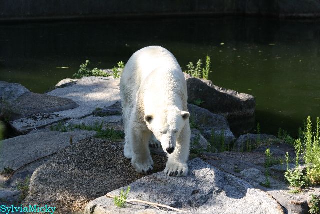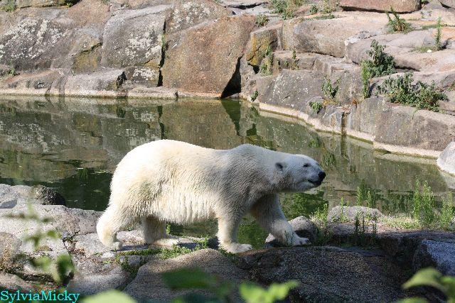 Gestern. Vor der Fütterung lief Tosca auf der Insel hin und her. Es war gestern sehr heiß.