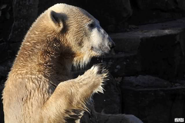 Eure Milbenvermutungen haben mich googeln lassen und außer einer engl. Abhandlung über Milbenbefall bei verschiedenen Bärenarten,auch Eisbären( kommt angeblich immer im Winter), habe ich den link oben gefunden, in dem Karlsruher Eisbärfans das gleiche Problem erörtern... mit dem erfolg, dass es mich nun schon überall kratzt.... also empfindsame Naturen lieber nicht anklicken...