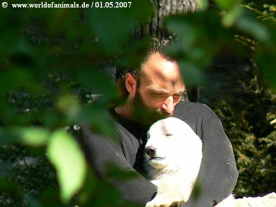 Knut sucks the hands and sleeps in the arms of Thomas Doerflein
