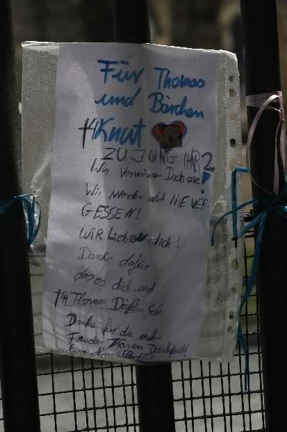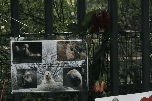 Ist es vielleicht ein Idee ein Thread zu öffnen, Hartmuth, wo man Bilder einstellen kan von Briefe, Karten, Blumen, Texten usw. der von Besucher in der Zoo gebracht sein? Meiner Meinung nach ist dass das richtige Antwort auf das herzloses Entfernen von Trauer-Ausdrücke. Und auch wenn die Aussagen der Zoo nicht gefällen, bleibt das herzlos. Der Zoo hat alle Chancen falsche Informationen zu rektifizieren; dafür ist doch keine Zensur nötig. Aber ja, das meint: Dialog, und Kommunikation - seltsame Sachen in ein sichere Berliner Verwaltung...
