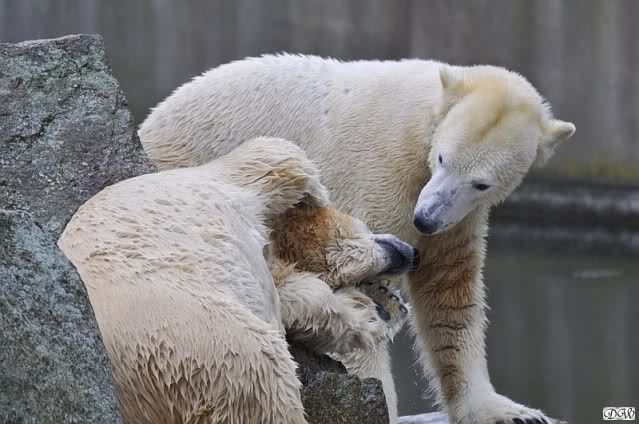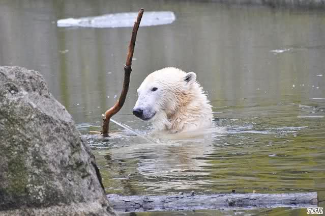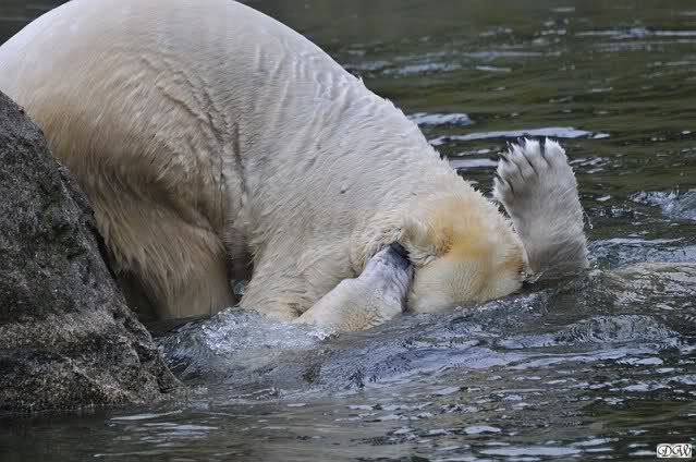 Highlife auf dem Eisbärenfelsen. Mir gefallen die Aufnahmen auch absolut. Zeigen sie doch jeden Tag ein Stückchen Weiterentwicklung von Knut. Dank an die fleißigen FotografInnen, die alles dokumentieren.