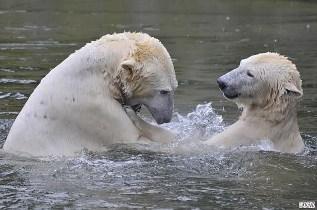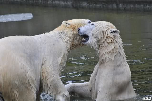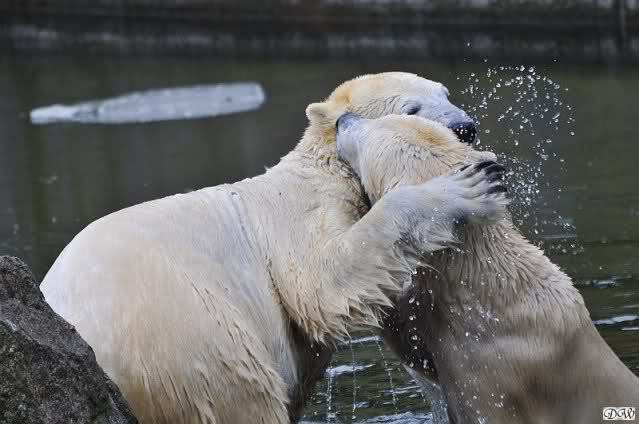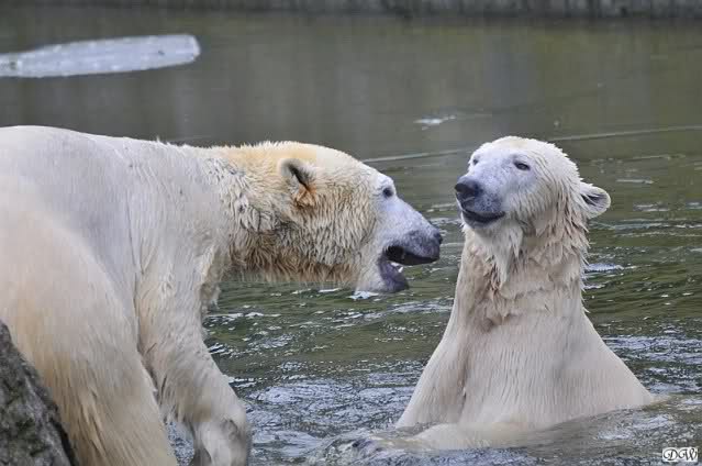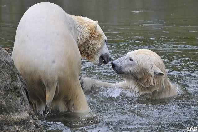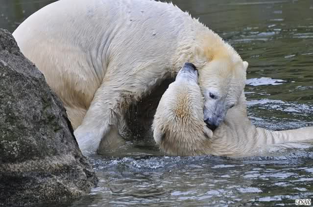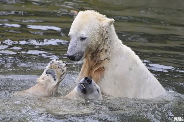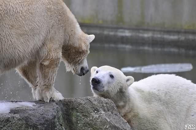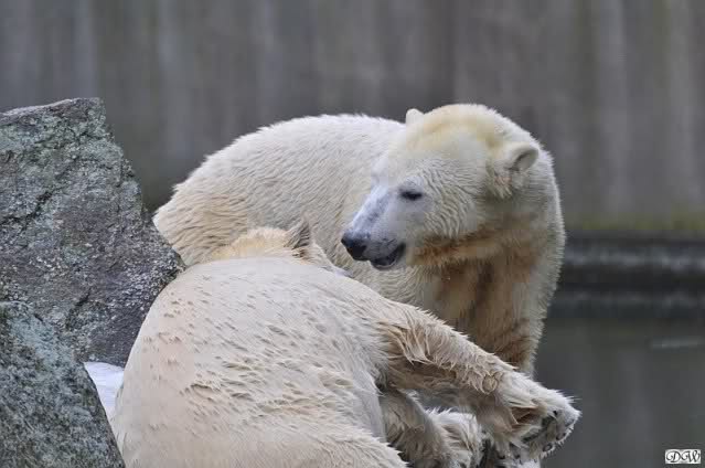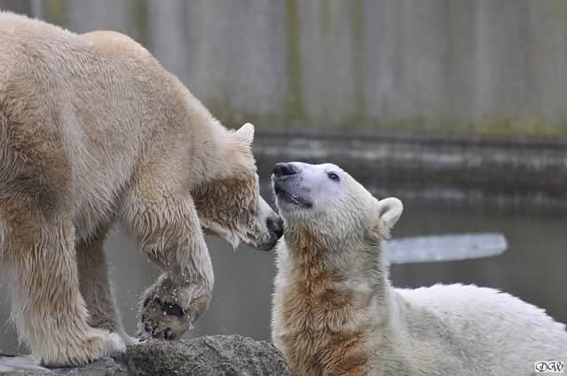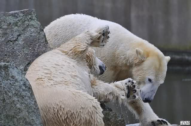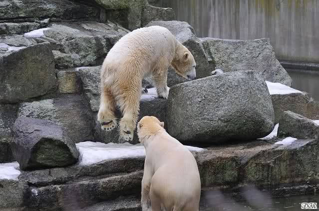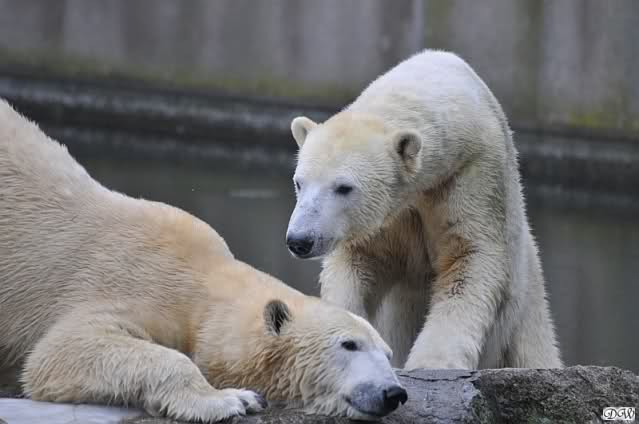 Highlife at the polar bear enclosure. Step by step, day by day more action between the bears. Knut and Tosca have so much fun. Enjoy the daily report and the great pictures.