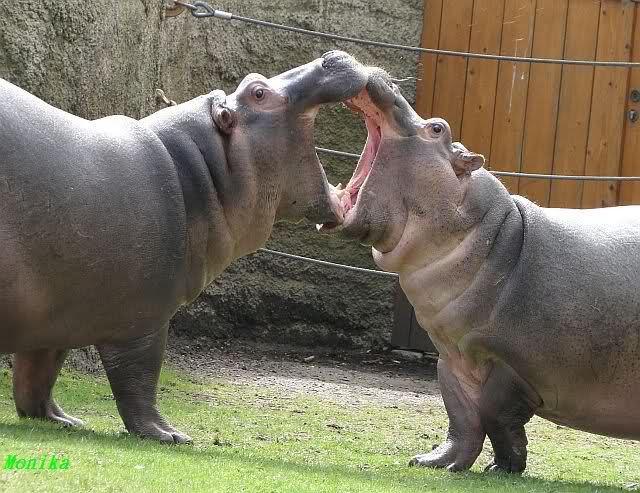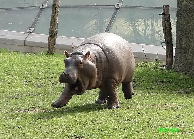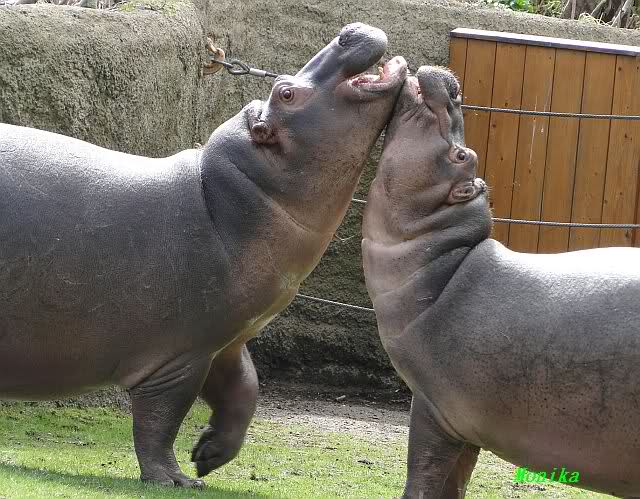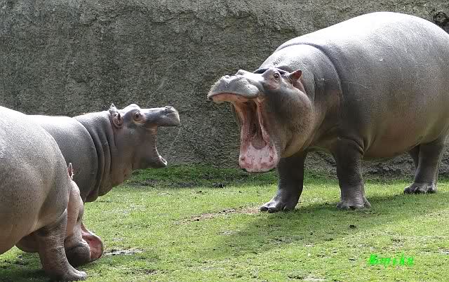 Die Flusspferde waren heute außer Rand und Band. Sie sind über die Anlage gerannt, wie ich so noch nicht gesehen habe. Die kleine "Sternchen" immer mitten drin. Mit Vorliebe biss sie ihre Artgenossen ins Hinterteil.