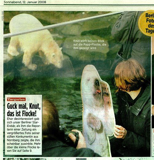 ich bin in den letzten Tagen nicht dazugekommen zu lesen und zu schreiben. Wenn man(n) oder frau etwas tun kann wegen Knut bitte ´mich wissen lassen. Ich werde so gut es aus der Ferne geht alles unterstützen damit nicht in einer wie schon angesprochen Nacht und Nebelaktion vom Zoo Berlin auf nimmerwiedersehen verschwindet. Für mich ist er in meinem Herzen und das wird er auch bleiben die Nummer 1. Die kleine Flocke rührt natürlich auch an méin herz weil sie noch so klein und hilflos ist, schöner und meiner Ansicht nach wäre es besser gewesen sie hätte bei ihrer mutter bleiben können, aber dies ist ja nun nicht mehr der Fall. Hoffe daß es auch für die Kleine gut ausgeht.