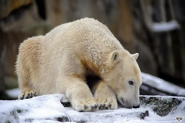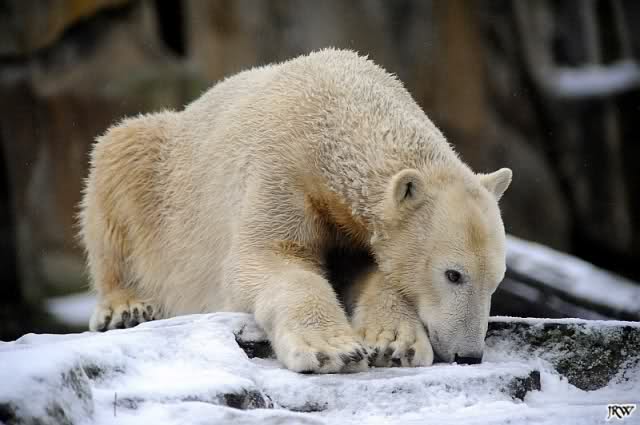 I have just admired your latest photos of our Knuti in the snow. I g0t tears in my eyes looking at the beautiful bear. I sincerely hope everything will turn out well for him this year! Once again I want to thank everybody who's been (and still are) working so hard for Knuti staying in Bärlin! Now I think I'm going to check flights to a certain city....