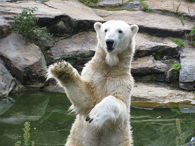 Ich schliesse aus Euren Berichten, dass Knut sich jetzt jeden Winkel des neuen Geheges angesehen hat, richtig? Da es von Seiten des Zoos die Sorge gab, dass er durch Spielzeuge komplett davon abgelenkt sein könnte, sich alles anzusehen und dies ja inzwischen geschehen ist, könnte man doch nun den Bollerwagen reinfahren und Knut auspacken lassen, oder?