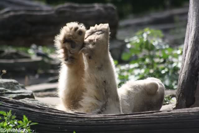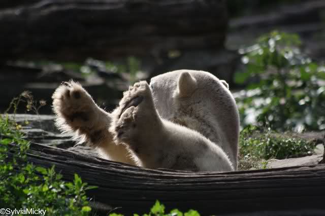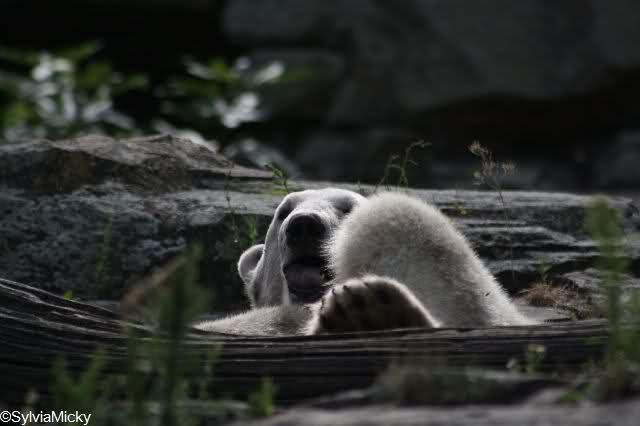 danke für die tollen Bilder von unserem Knut, sie sind immer die reinste Freude. Auf den Bildern von Ursula, beim Spielen mit dem Baumstamm, da lacht Knut eindeutig, er strahlt vor Freude und Lebenslust. Wirklich alles tolle Fotos, danke.