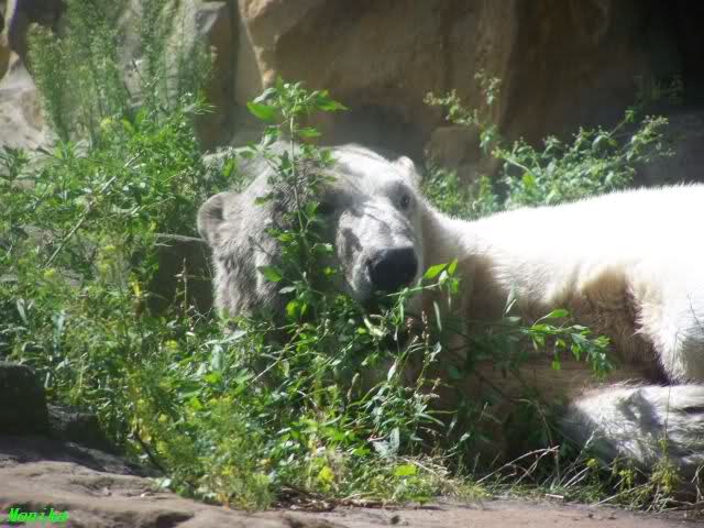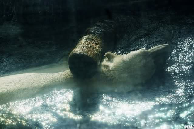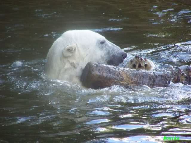 Es war zwar noch etwas früh für die Fütterung der großen Eisbären, aber ich ging schon mal hin. Noch waren nicht viele Leute da. Deshalb konnte ich in Ruhe die Eisbären beobachten und dabei die Seele baumeln lassen.