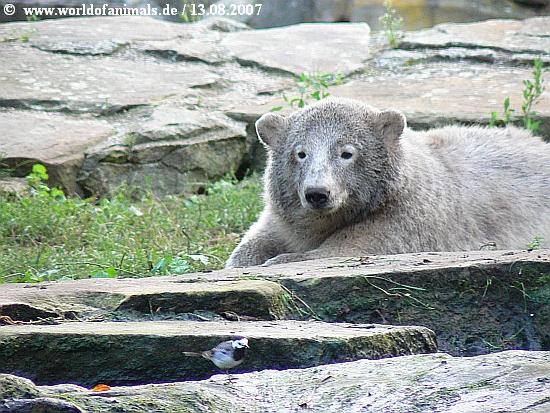 Was hatte der kleine Eisbär fröhliche Augen! Manchmal sah es aus als ob er lächelt. Ich weiß natürlich das Tiere nicht lächeln können dafür fehlen ihnen die entsprechenden Gesichtsmuskeln, aber in den Augen der Tiere kann man lesen, wenn man will. Meiner Meinung rutscht er in eine handfeste Depression, gibt's bei Tieren auch. Hoffentlich kommt Herr Dörflein bald zurück!