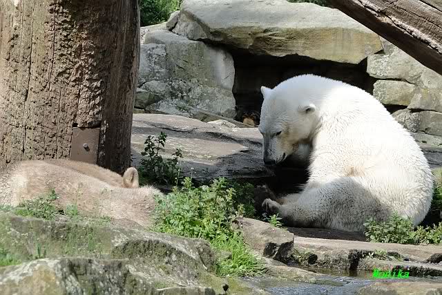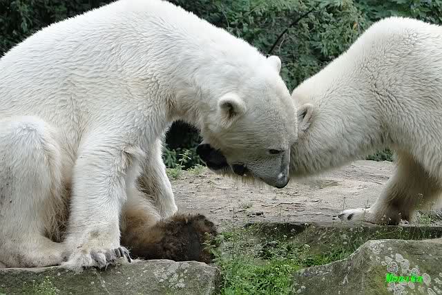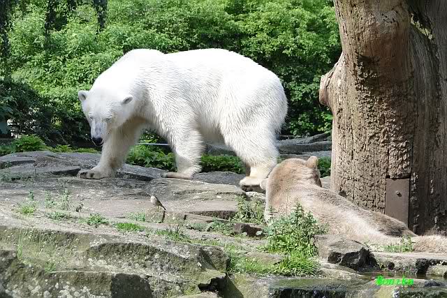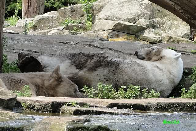 I was in Zoo at saturday afternoon too. The two polar bear kids did sleep, so I watched the three little polar wolves. You can watch one of my videos by Youtube now. Take a look to the link in Berlin Zoo thread.