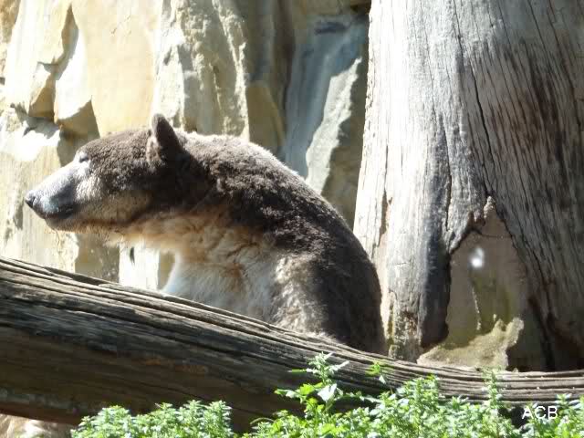 Bei meinem heutigen Besuch am Nachmittag herrschte die verdiente Sonntagsruhe. Da der Zoo heute trotz Kindertag weniger Besucher hatte, wurden die beiden Bärenkids auch nicht zu sehr in ihrer Ruhe gestört. Es war für einen Sonntagnachmittag, bei sommerlichen Temperaturen, richtig angenehm im Zoobereich. Auch die Wölfe schliefen lange, die Jungen waren kaum zu sehen.