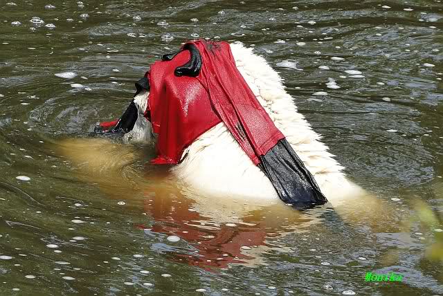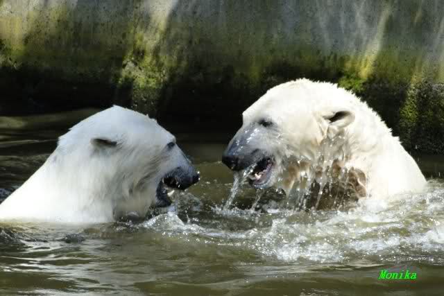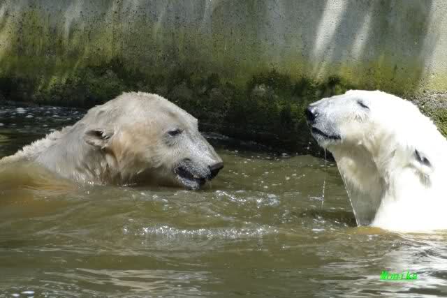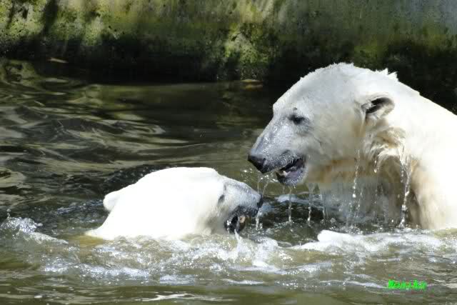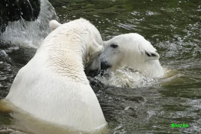 Nach den Wasserspielen sahen beide aus, als wenn sie in Bleichmittel gebadet haben. Schön Eisbärweiß.