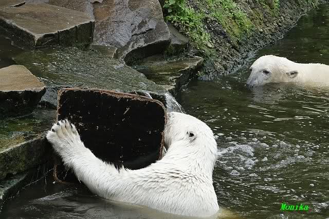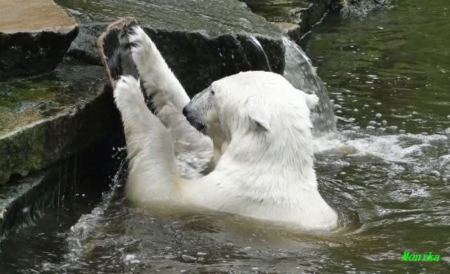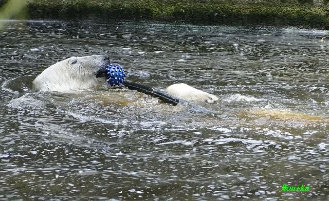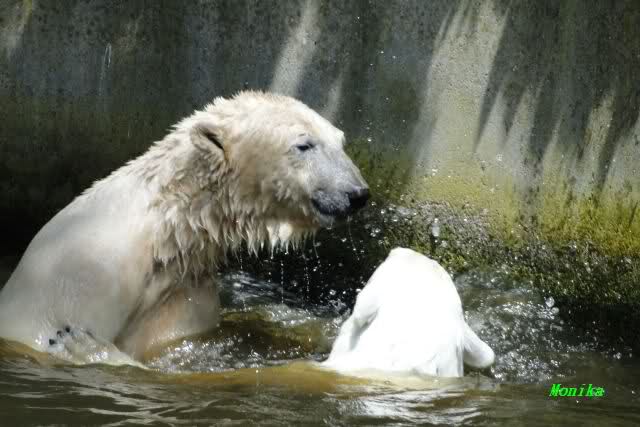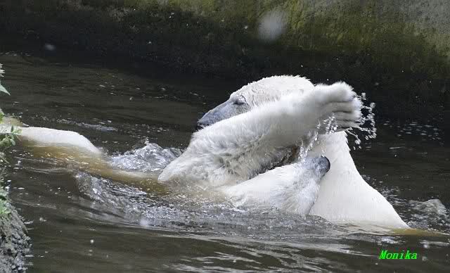 Gianna sprang gerade ins Wasser, als ich am späten Vormittag im Zoo ankam. Knut war bereits im Wasser. Sie sollen morgens auch schon zusammen gespielt haben.