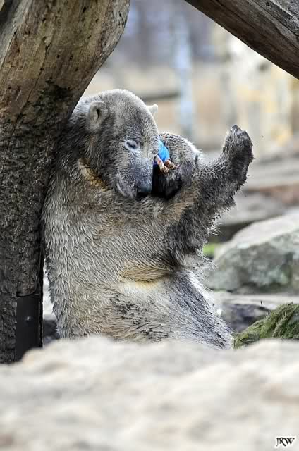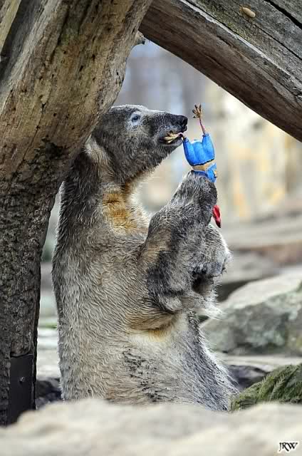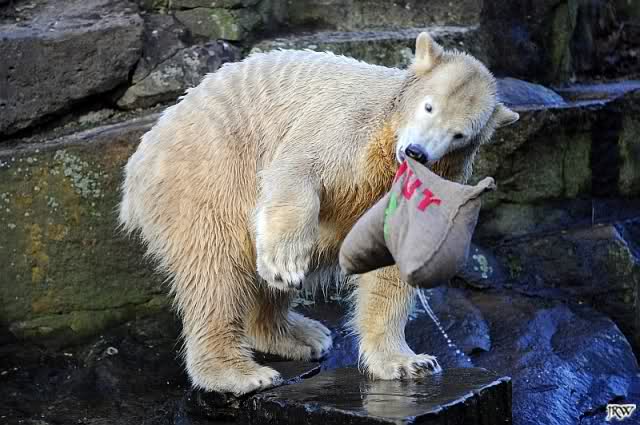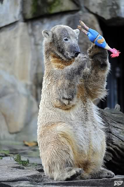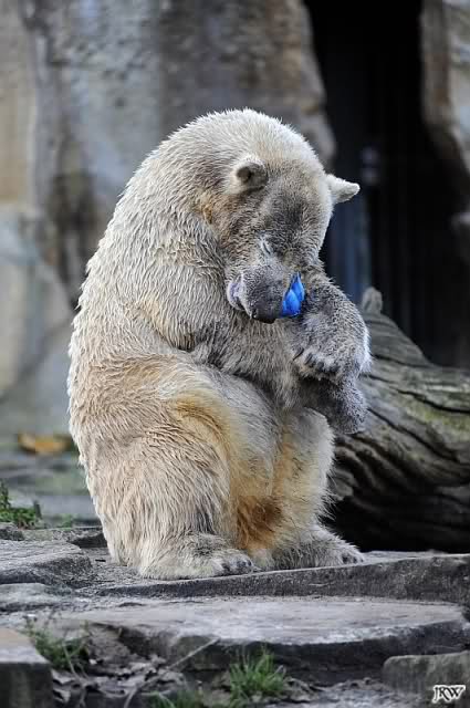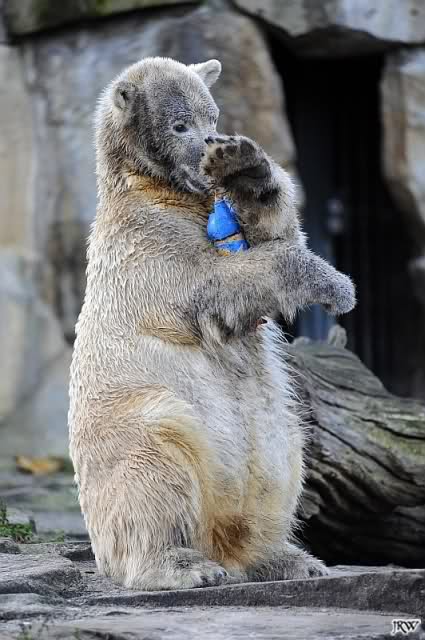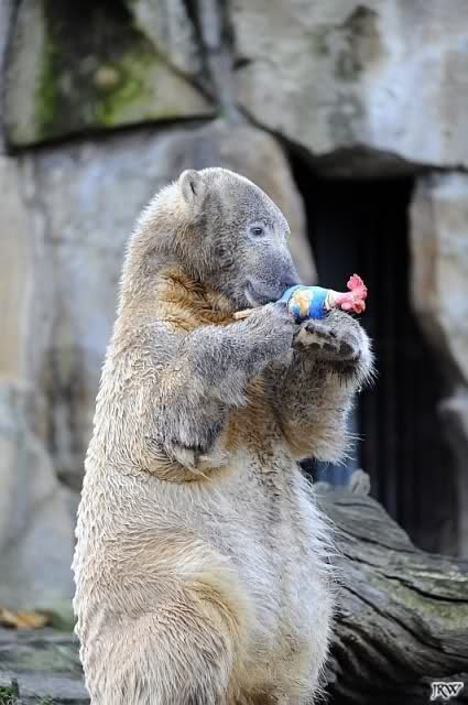 Für mich immer wieder faszinierend zu sehen, wie liebevoll Knut mit solchen Spielzeugen umgeht. Fast inniger als es je Menschenkinder machen können. Es sind Bilder die einfach bewegen.