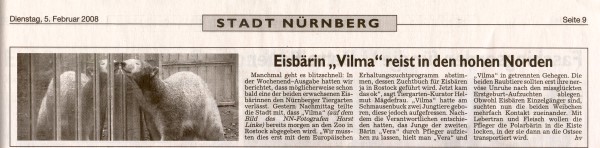 @Ursi: Normalerweise sind Eisbären Einzelgänger, ich denke, im Zoo ist es wohl eher aufgrund der Enge, dass sie sich miteinander abgeben. Aber Felix soll auf jeden Fall nach Nürnberg zurück kommen.