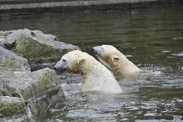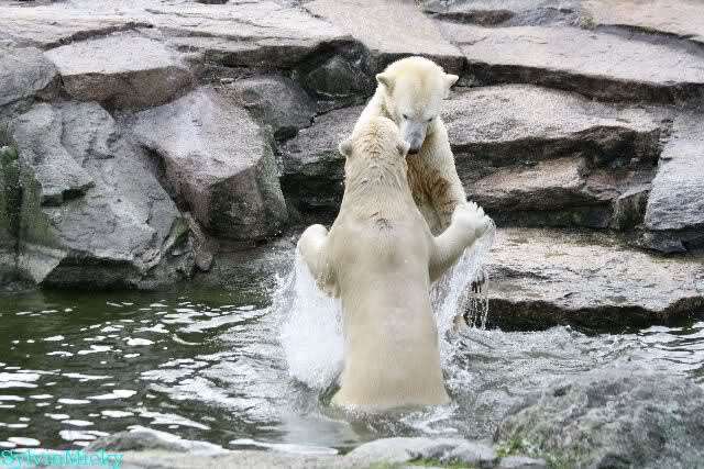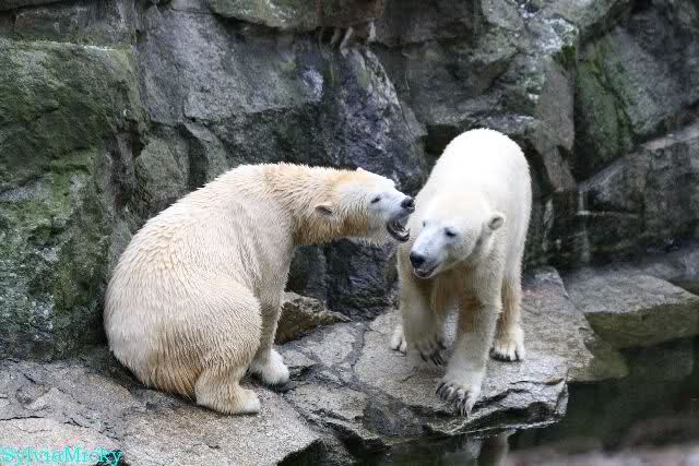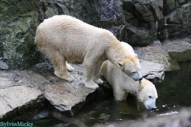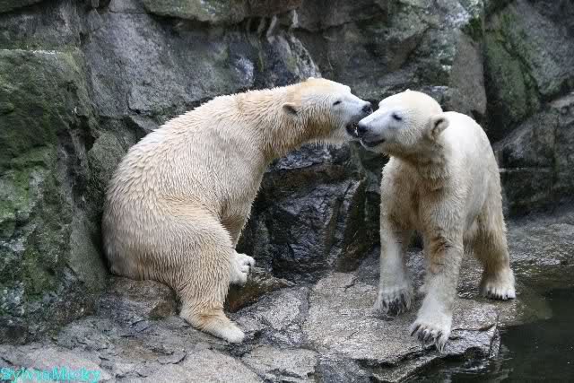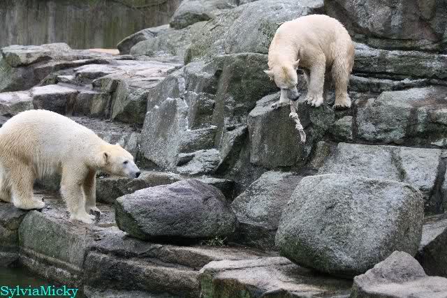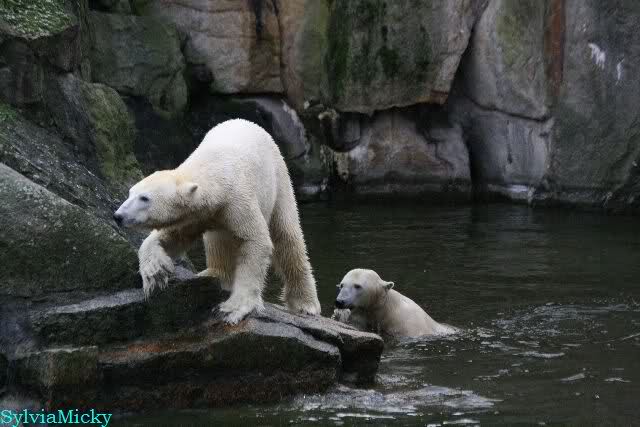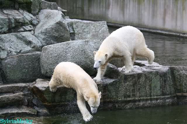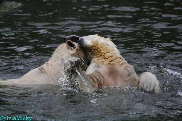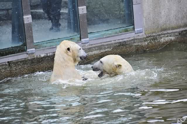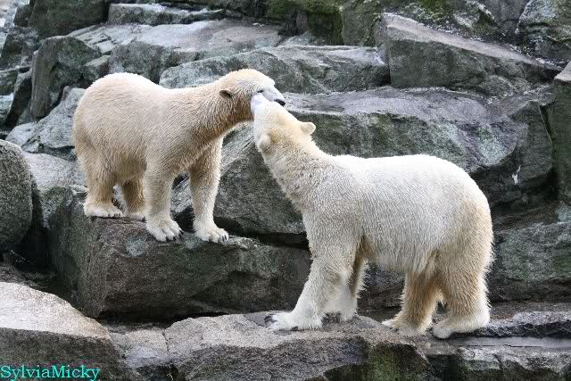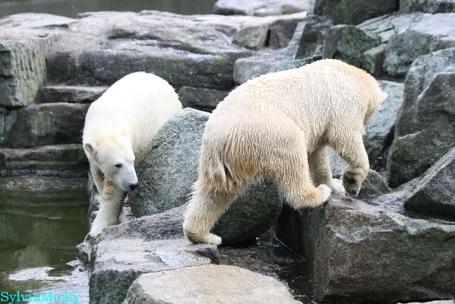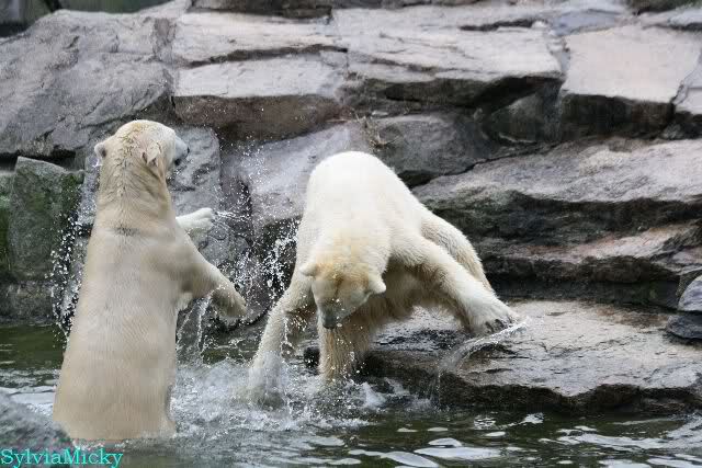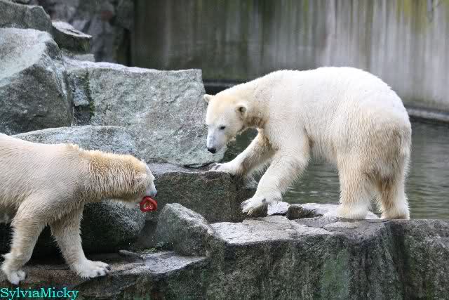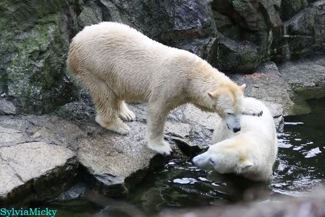 Dear Sylvia, it was all worth it to wait a bit longer for these wonderful pics. And OK, a mother should not bite her son, but maybe she only wanted to motivate him for some "actions" (especially given his "lazy" day yesterday). The think that pleases me the most is the fact that apparently, Knuti can often make stop Tosca from making her strange "dancing". I still hope and pray that one day he will be successful to stop it entirely.