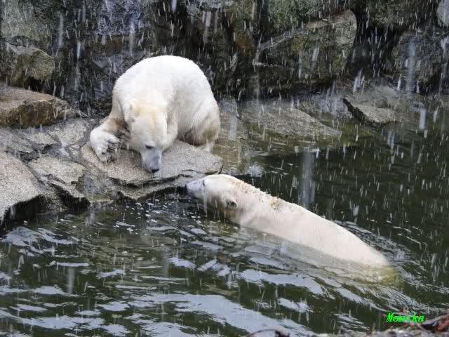 Dear Monika, thank you so much for these pics. Well, maybe, Knuti was only tired and needed some time for himself. But nevertheless, it is a bit sad to see all efforts of Tosca becoming in vain. And by the way, O JEE, you got serious snow again there in Berlin. Although I know that you are not the freezing kind, please make sure to put on enough warm clothes to avoid catching a cold or so. Na ja, I must confess, that this request is a tad selfish: if you cannot go to Zoo, I am running the risk of missing my daily portion of nice pics.