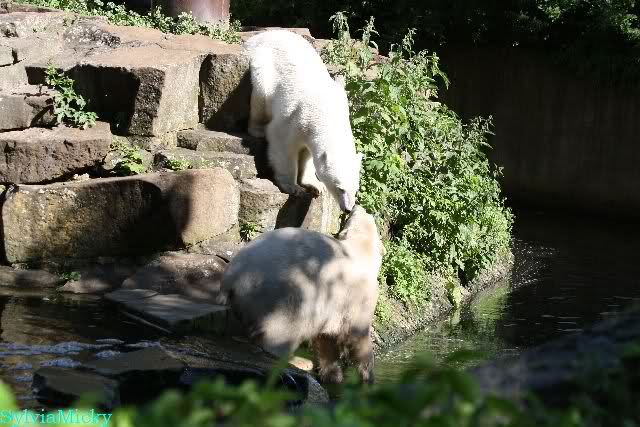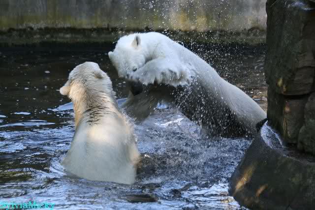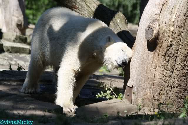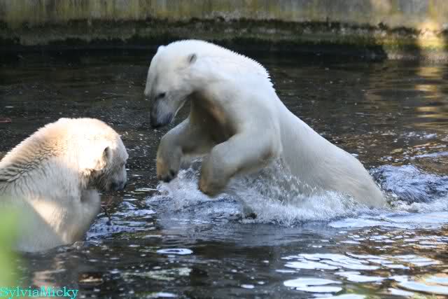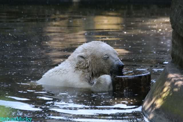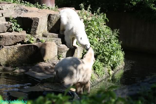 So wie es zur Zeit ist, meine ich, dass Knut wirklich schon eine Macke hat und auch nahe dran ist, verhaltensgestört zu werden. Was ist, wenn Gianna wieder nach München muß? Wenn Tosca von ihren beiden Freundinnen getrennt wird und alle drei Eisbären-Mädels unter dieser Trennung leiden?